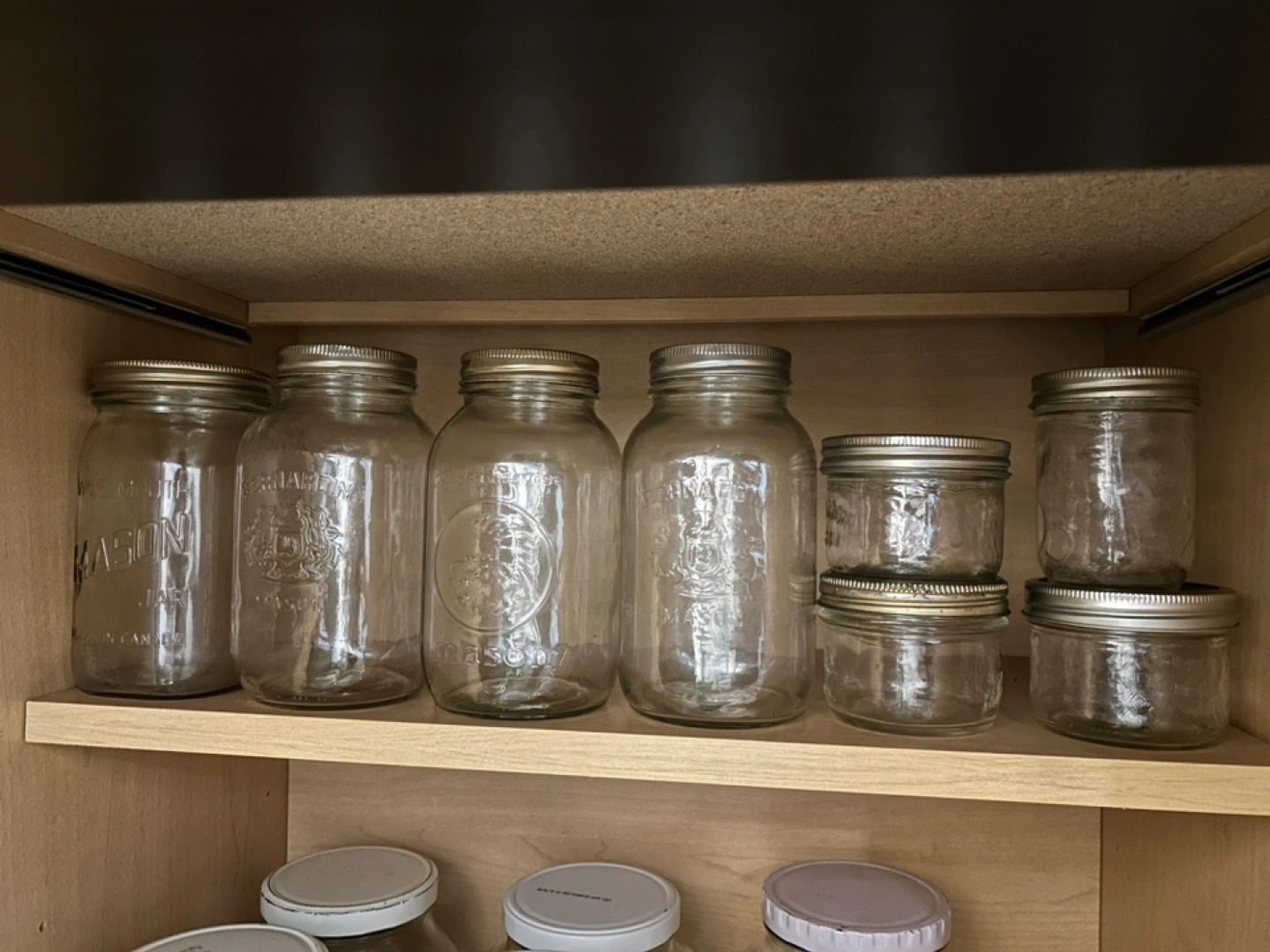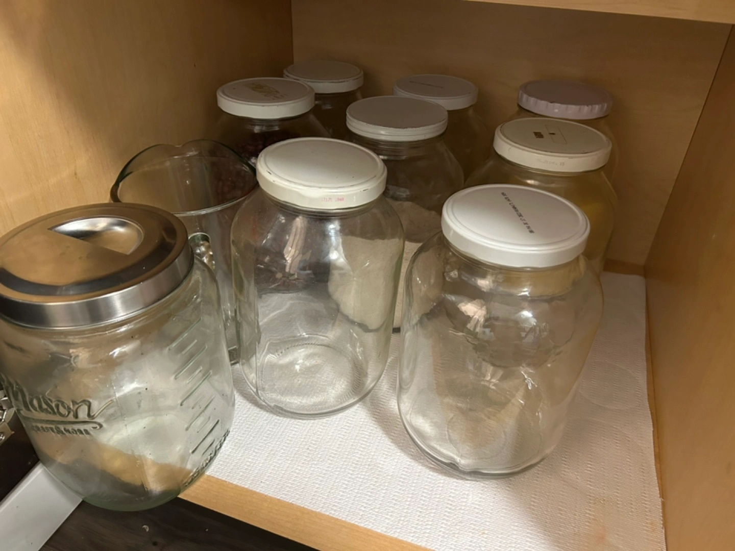 Includes several 750ml-250ml Mason jars and other similar styles.