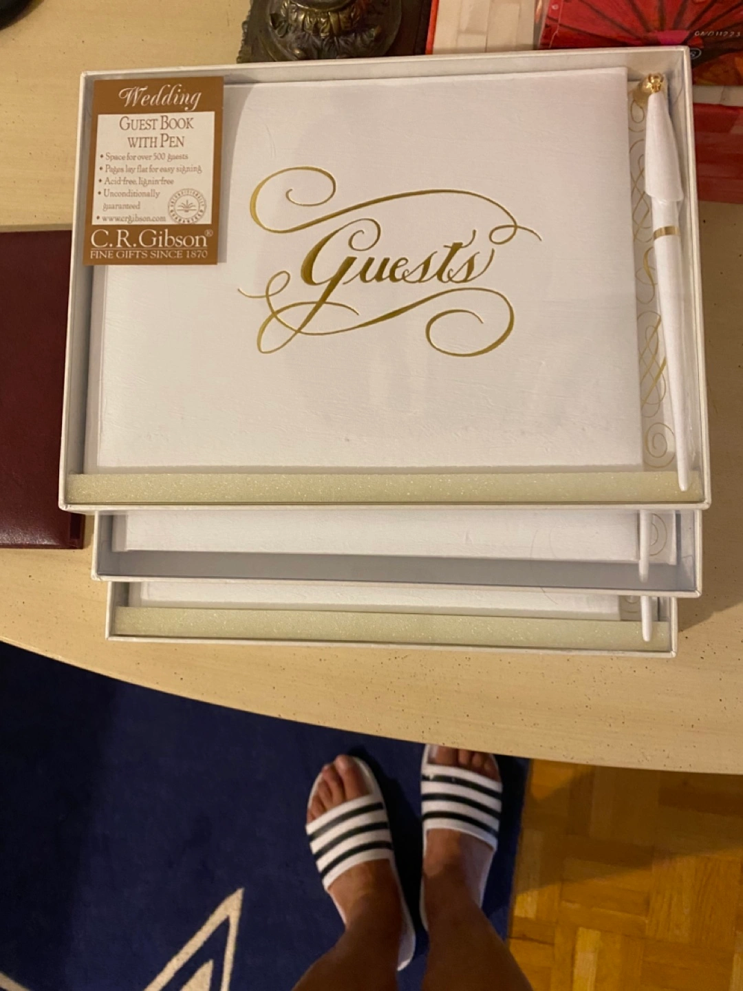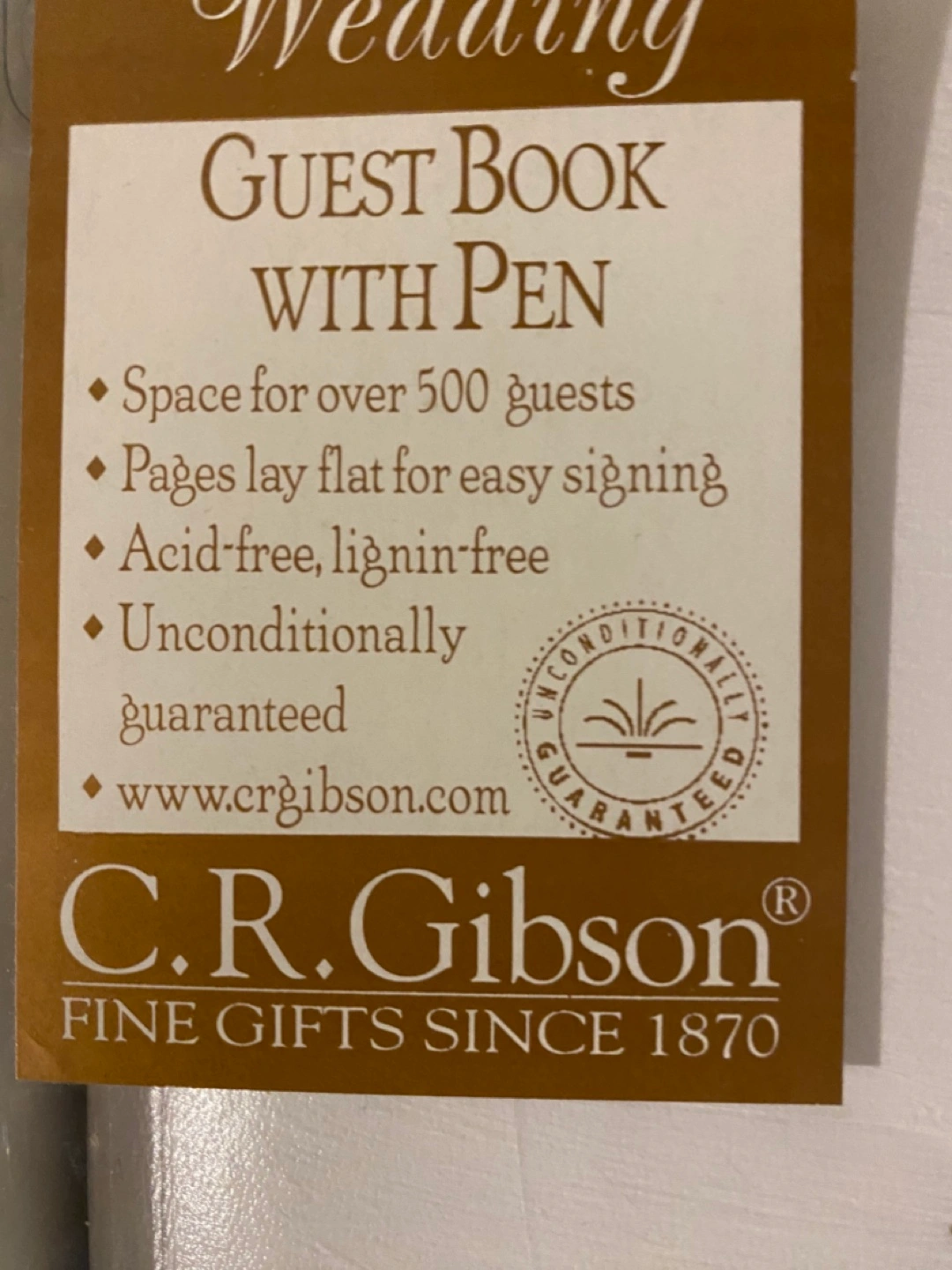 Three new C.R. Gibson wedding guest books with pens. Space for over 500 guests. Acid-free, lignin-free pages lay flat for easy signing. Unconditionally guaranteed.