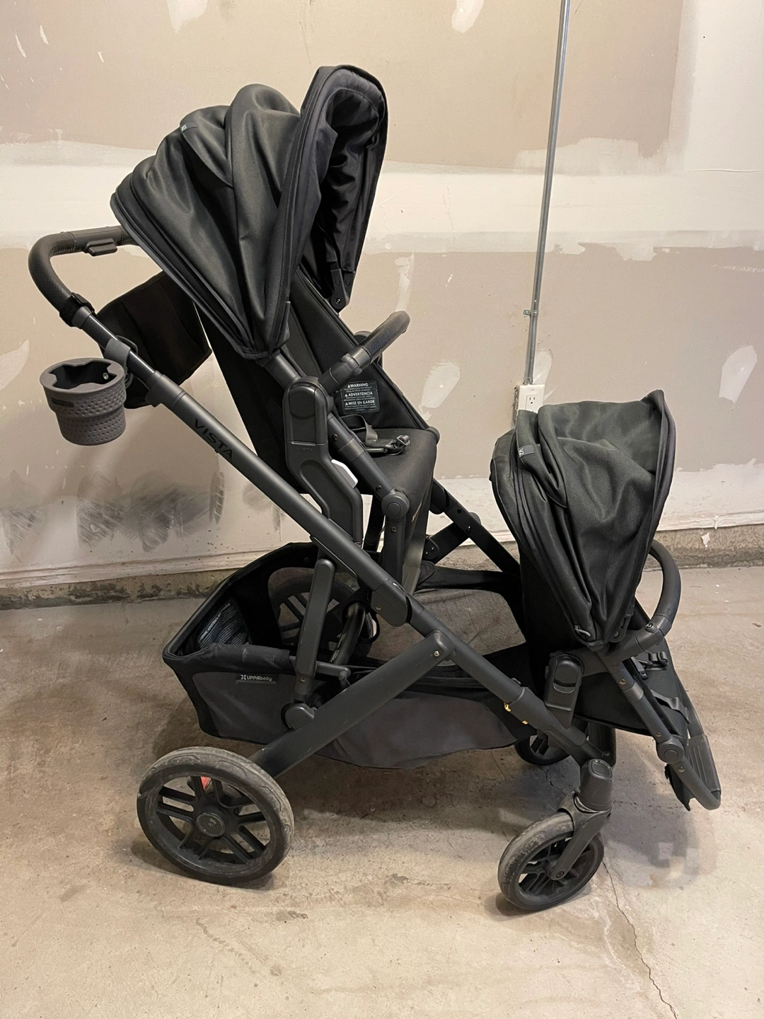 Purchased 2022. Includes SkipHop cup holder and handle storage. Great condition. Used for two children. Includes bassinet, rumble seat (was sold separately) and rain and bug covers