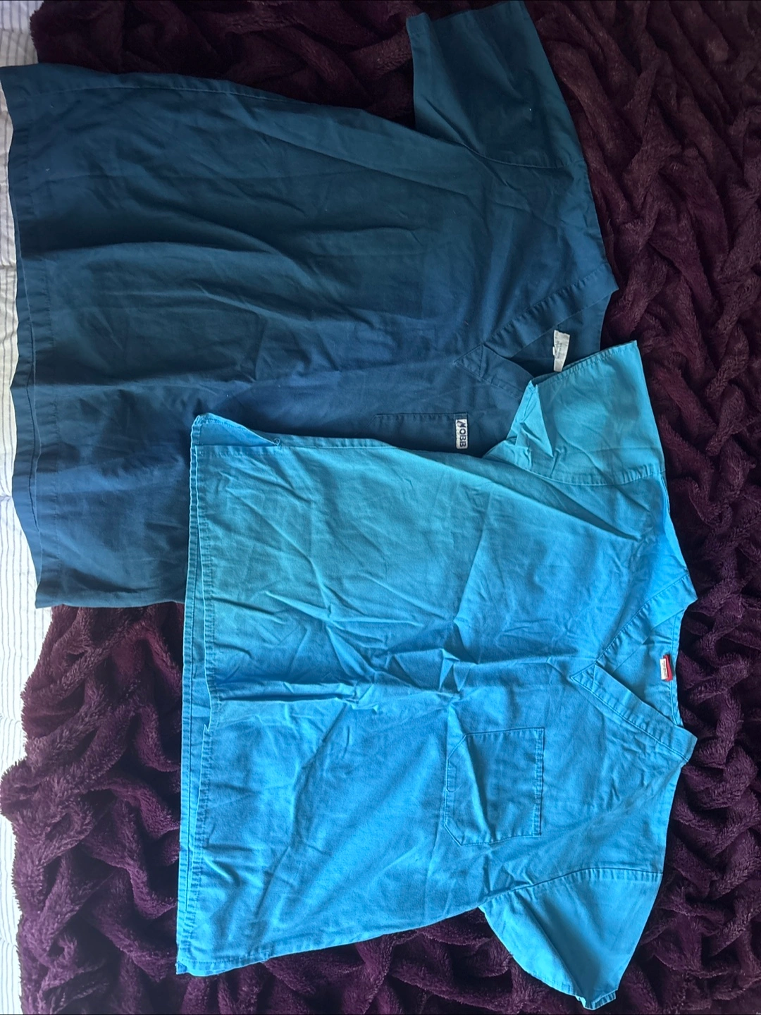 Two blue scrub tops. One MOBB size XS, one Dickies size SM. Both V-neck, short sleeves. Amazing condition.