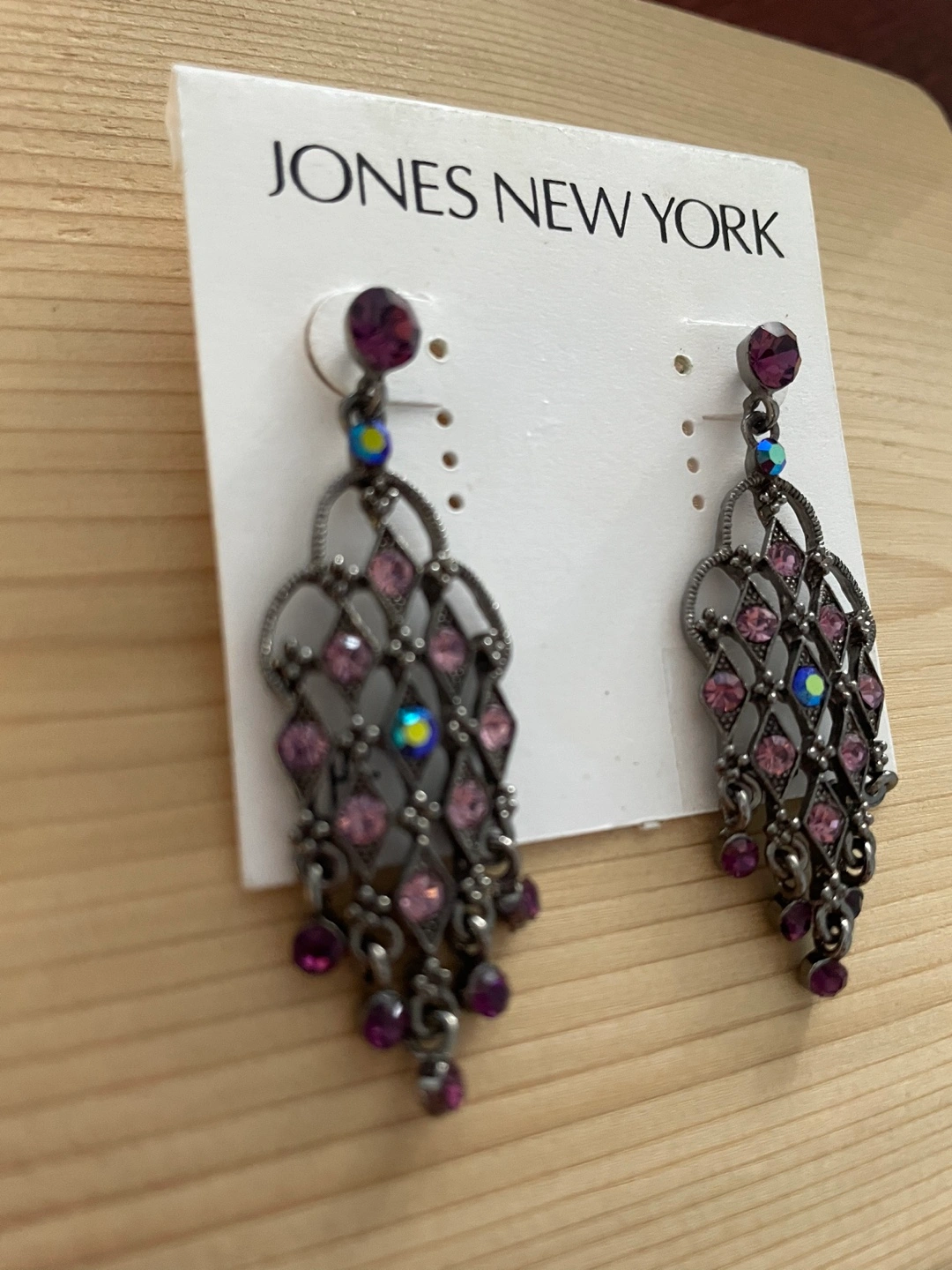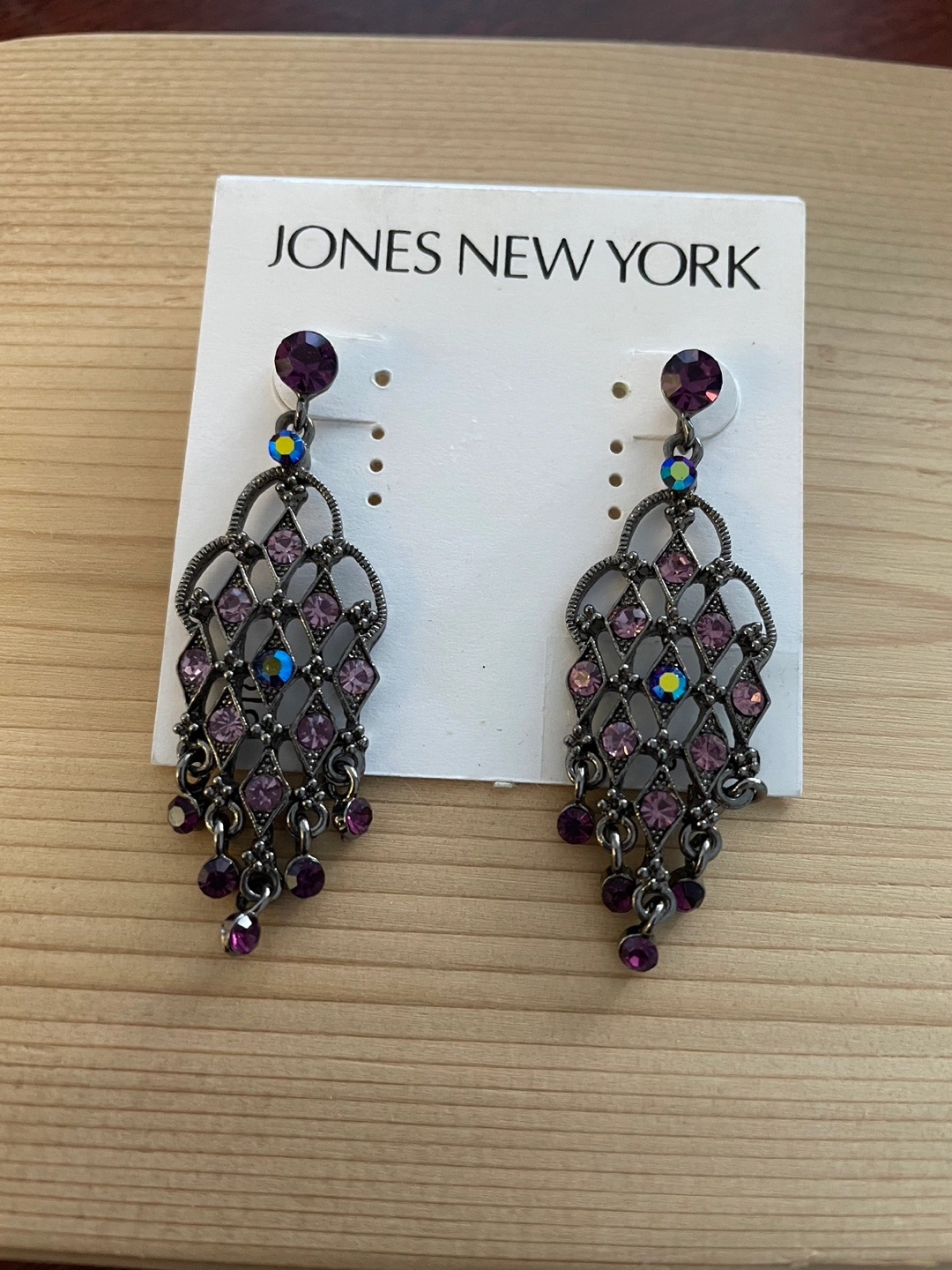 Gorgeous new dangling earrings. Purple crystals and dark metal accents. Elegant design.