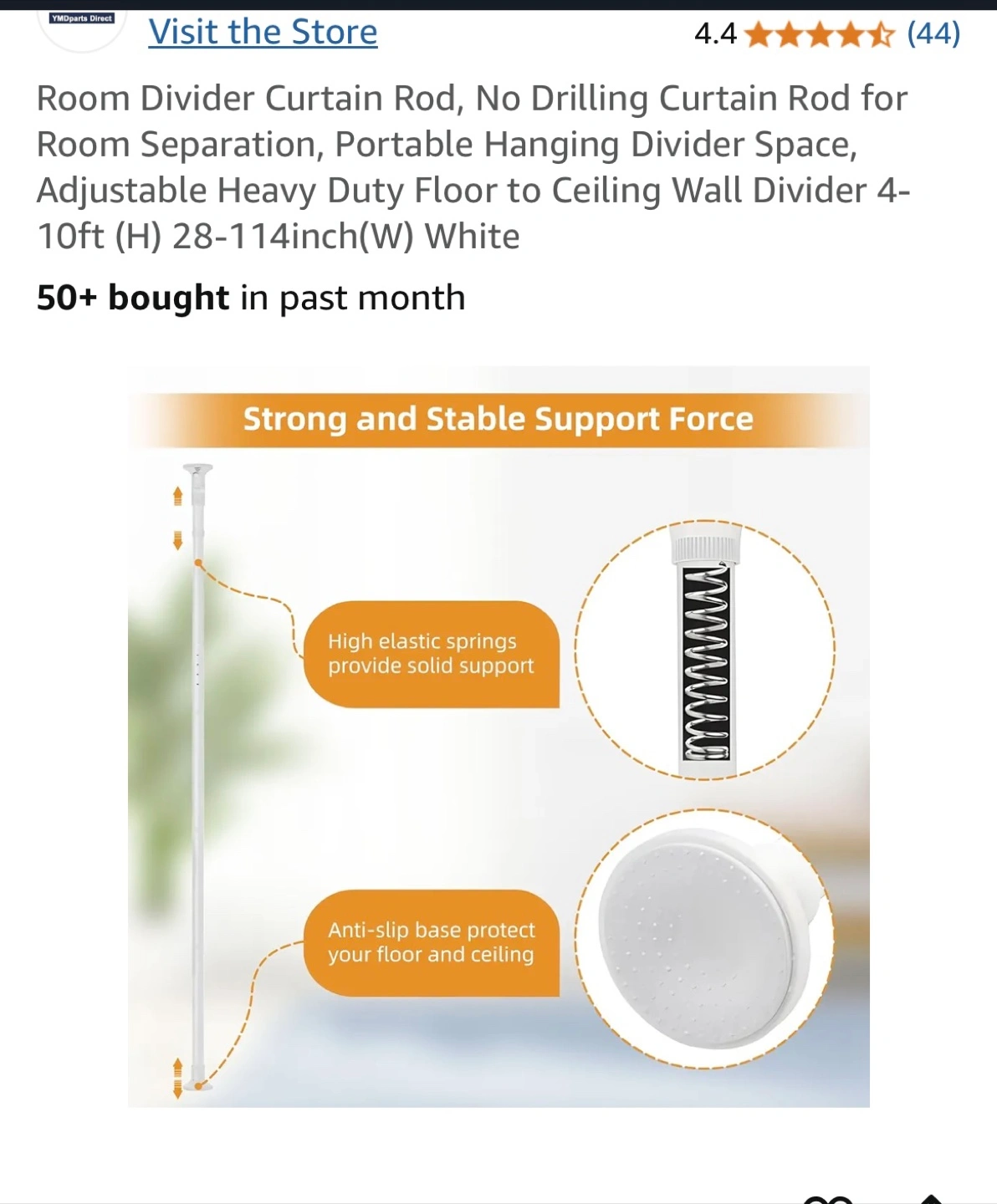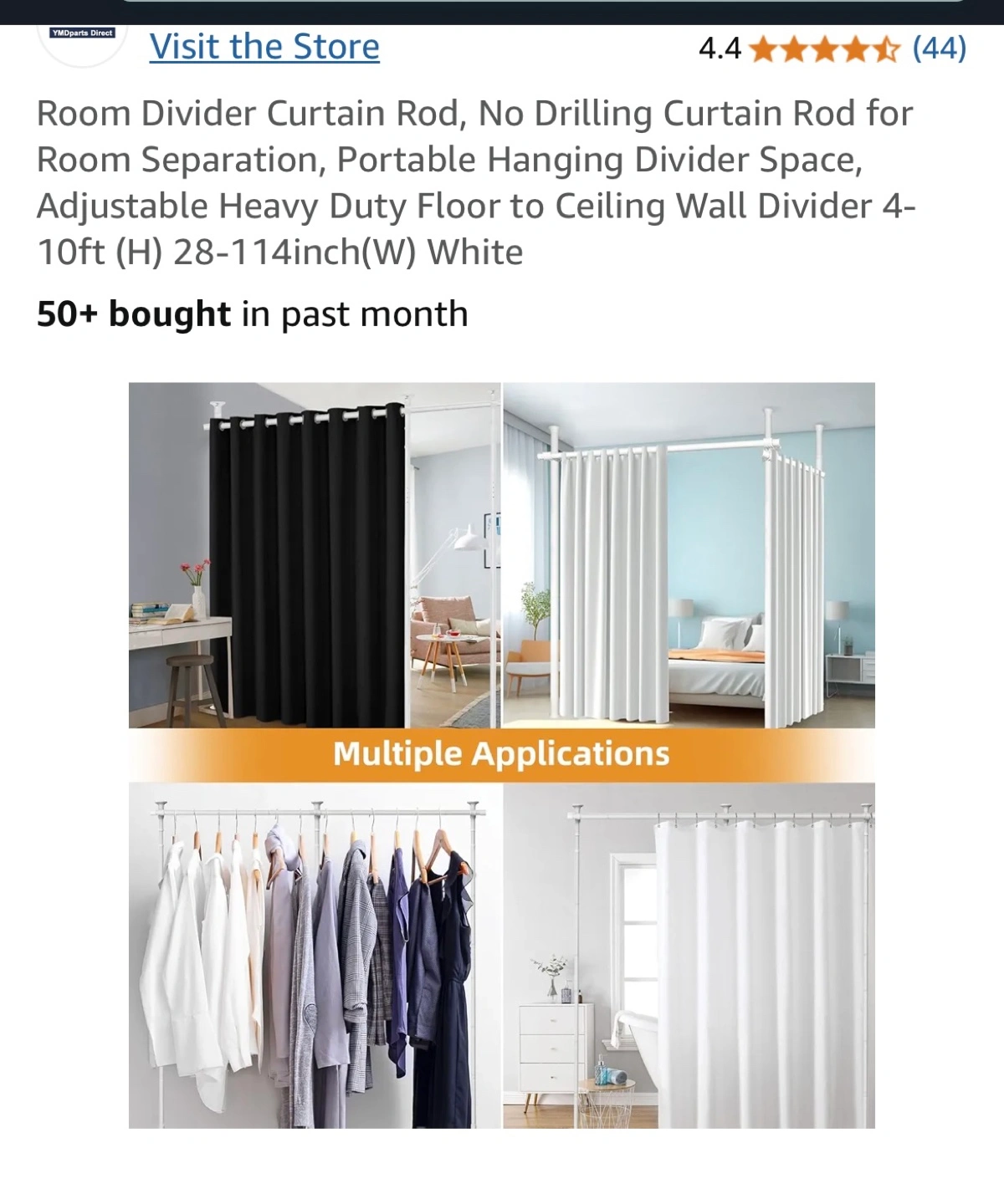 Portable hanging divider, no drilling required. Adjustable height (4-10ft) and width (2.3-9.5 ft). Strong support, stable base. Ideal for room separation. White colour.