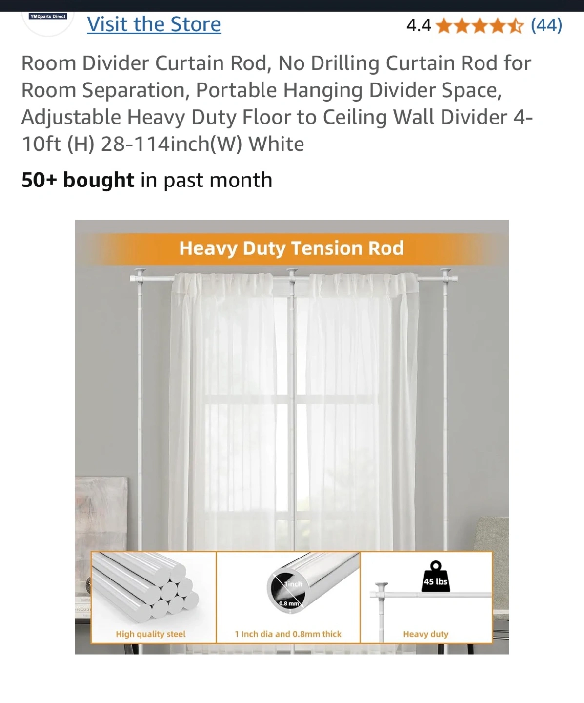 Heavy Duty Adjustable Room Divider Curtain Rod - White