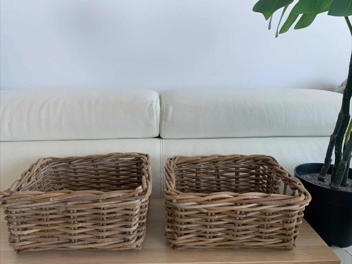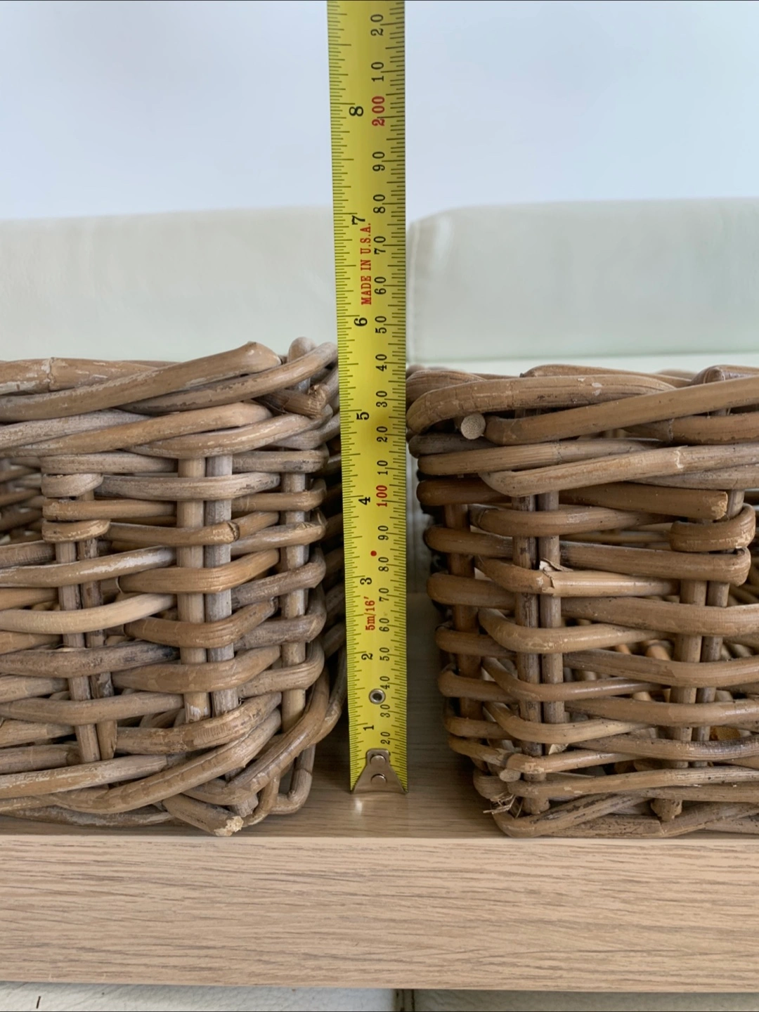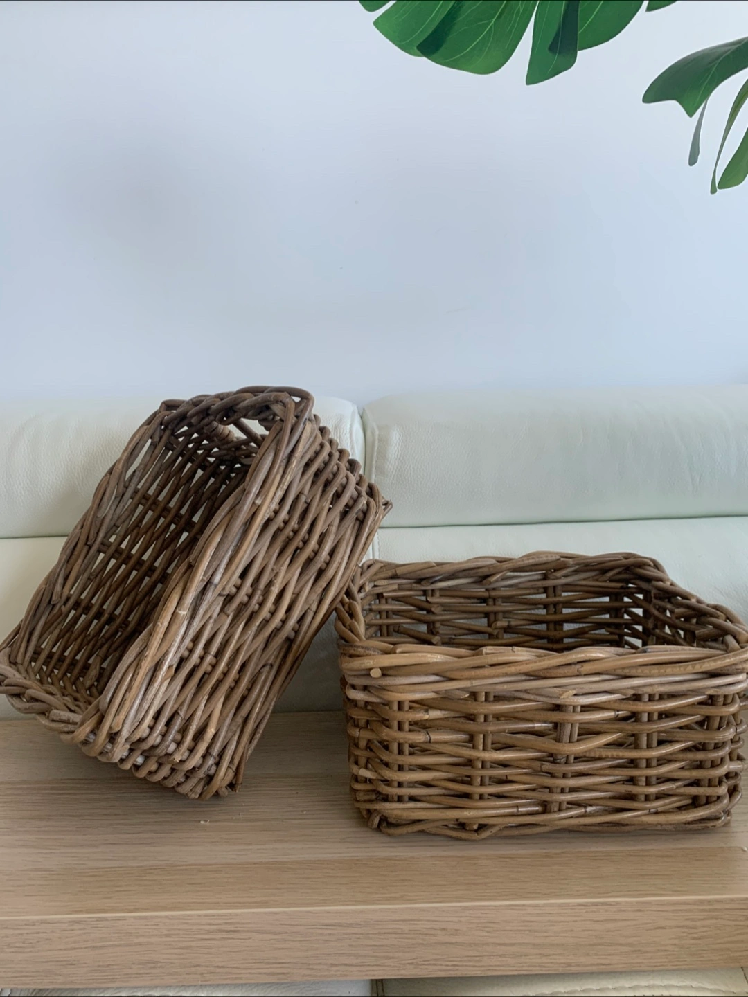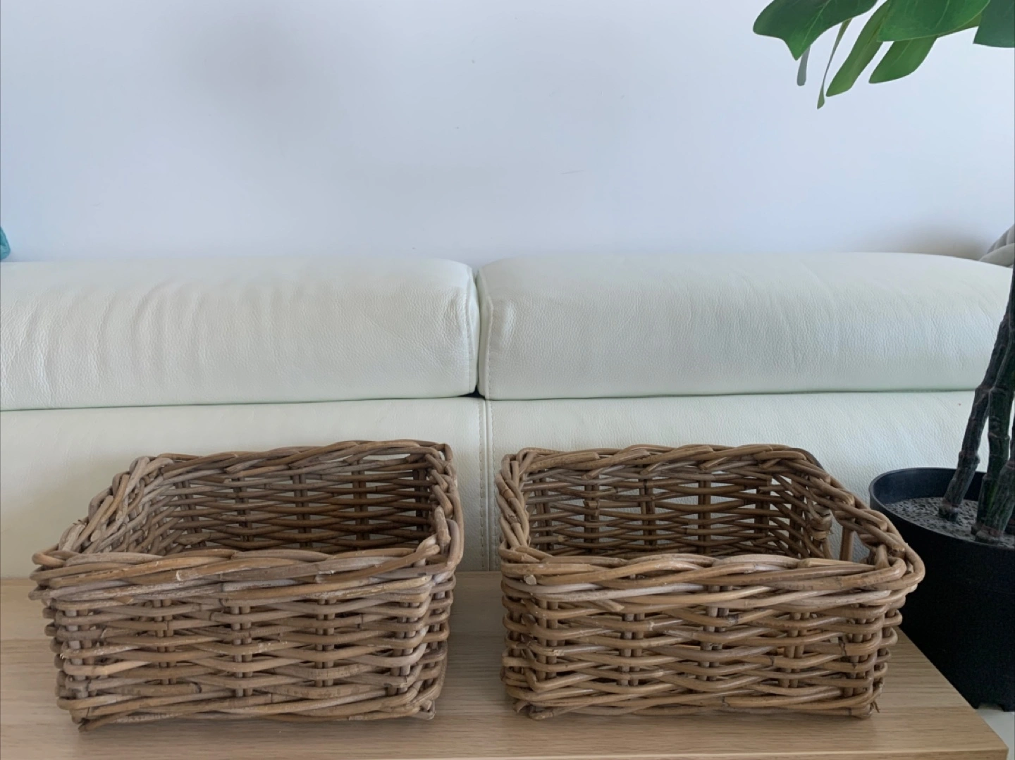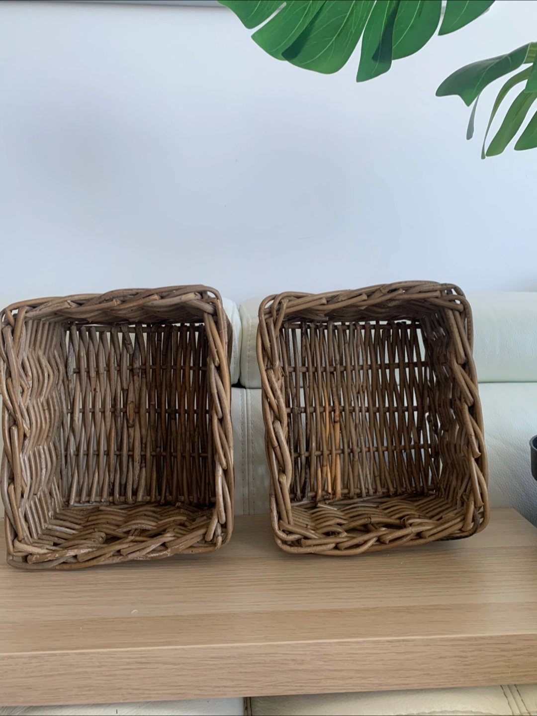 1000+Selling as a set of 2 gorgeous baskets (not individually). Like new condition. Very sturdy and thick, nothing too heavy for these ones. Beautiful colour brown. There are some minimal wear (only superficial) on some of the branches(see pics). It honestly look like it was made that way lol 1 of the baskets corner doesn’t seem to quite lay completely flat - I think putting something heavy in it for a lil while can fix it or simply tape a tiny thing underneath. Honestly, it never bothered me, im just extremely transparent w/ my items I sellI. I actually bought it that way, never felt the need to go back to exchange it. Pick-up. Cash. No holds, first come first serve. 💛Look at my listings for great bundle discounts.