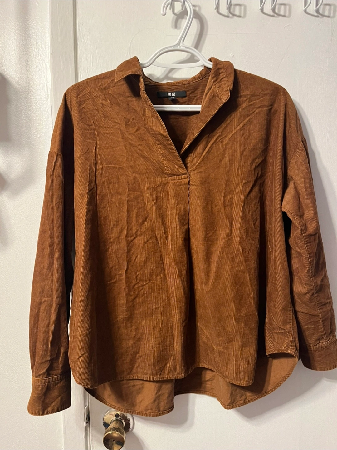 Brown corduroy collared shirt. Long sleeves. Relaxed fit. Size medium. Uniqlo