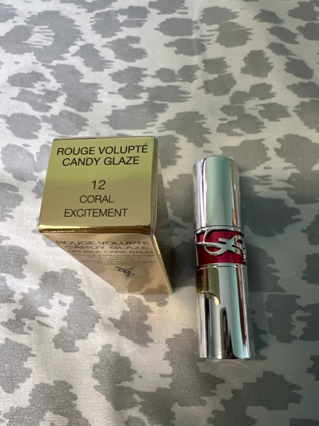 Brand new Yves Saint Laurent Rouge Volupté Candy Glaze Double care balm in shade #12 Coral Excitement. Moisturizing formula & glossy shine.