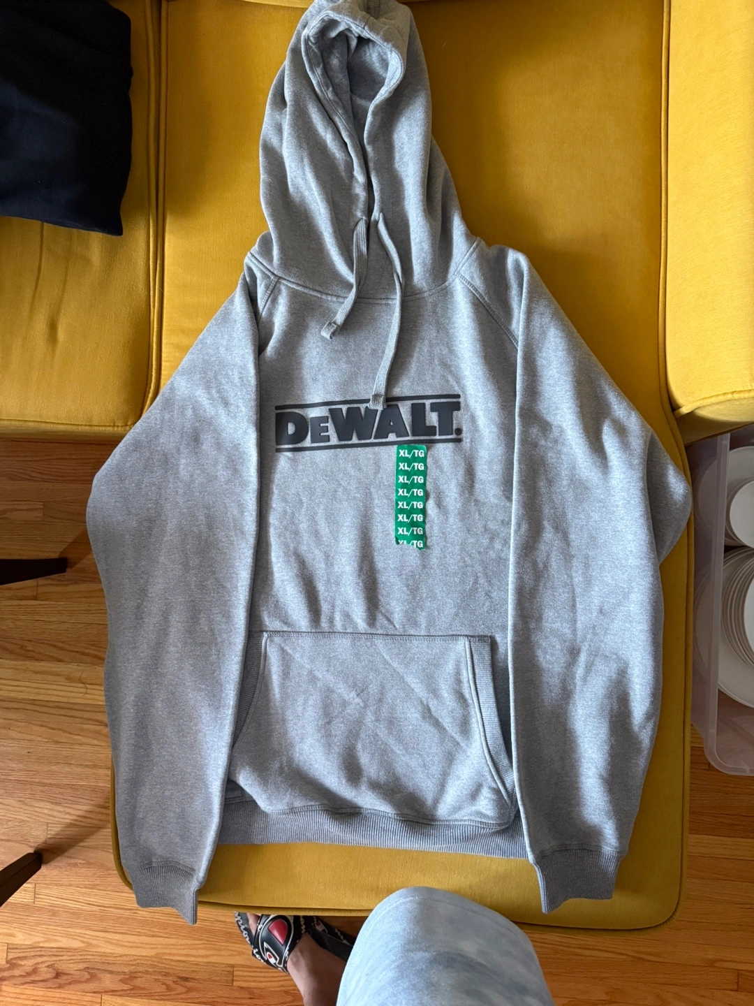 Get ready to work or relax in style with this new DeWalt hoodie in size XL! This hoodie is brand new with tags and ready for a new owner. Features: * Size: Extra Large * Colour: Grey * Brand: DeWalt This hoodie is so comfortable, you might just want to wear it everywhere! Don't miss out—if the ad is up, it's still available! Pick up in Downtown. Please check out more of my items and get a good deal.