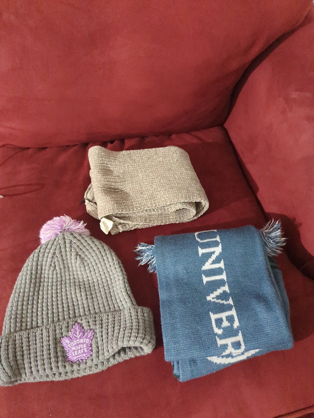156Hat and 2 scarfs for winter protection. Found it pretty useful when the winter is at it's peak.#freecycle