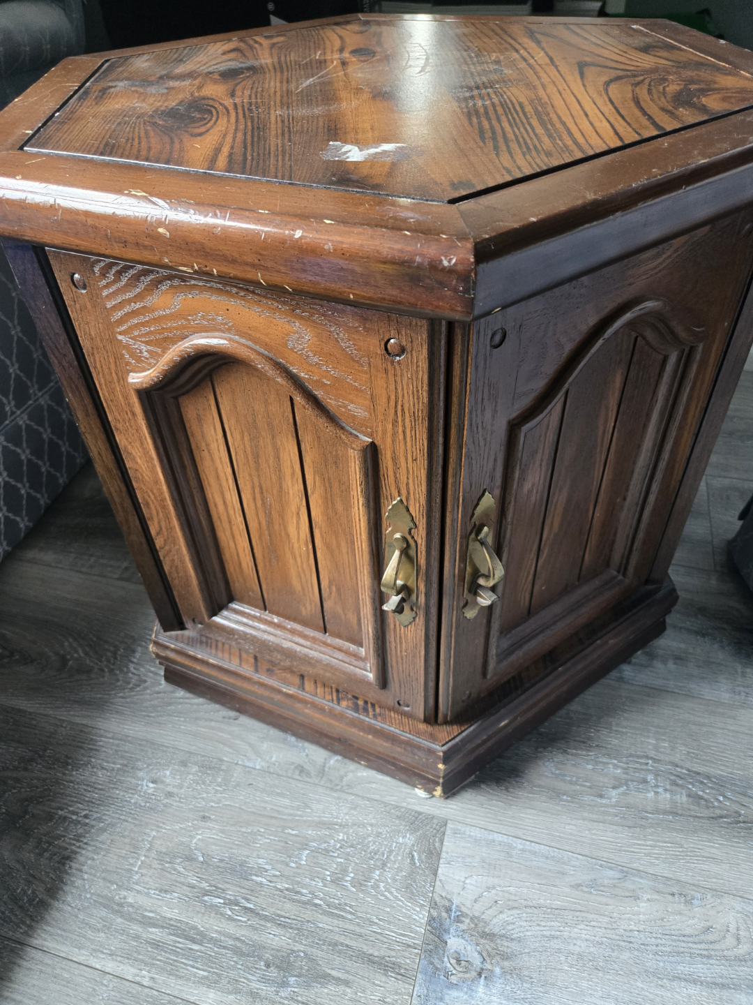 1 / 21 / 2Buy & SellVintage Wooden Octagonal End TableVintage Wooden Octagonal End Table$20Octagonal shaped wooden end table. Features a double door with two small brass knobs. Dark wood finish. and some wearWHERE TO MEETCheck LocationView MapSELLERverifiedJasonMckenzie Towne1236 reviews1 chats·0 favorites·75 viewsSEND CHAT TO SELLERHi Jason! I’m interested in your listing.Hi Jason! I’m interested in your listing.Get the Karrot app to chatSign In to chat