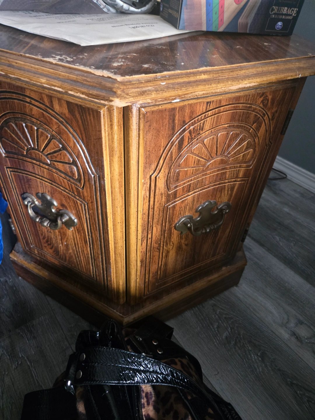 Buy & SellOctagonal Wooden End TableOctagonal Wooden End Table$25Small octagonal end table. Dark wood finish. Some minor wear and tear. Perfect for a lamp or small decor.WHERE TO MEETCheck LocationView MapSELLERverifiedJasonMckenzie Towne1155 reviews0 chats·0 favorites·34 viewsSEND CHAT TO SELLERHi Jason! I’m interested in your listing.Hi Jason! I’m interested in your listing.Get the Karrot app to chatSign In to chat