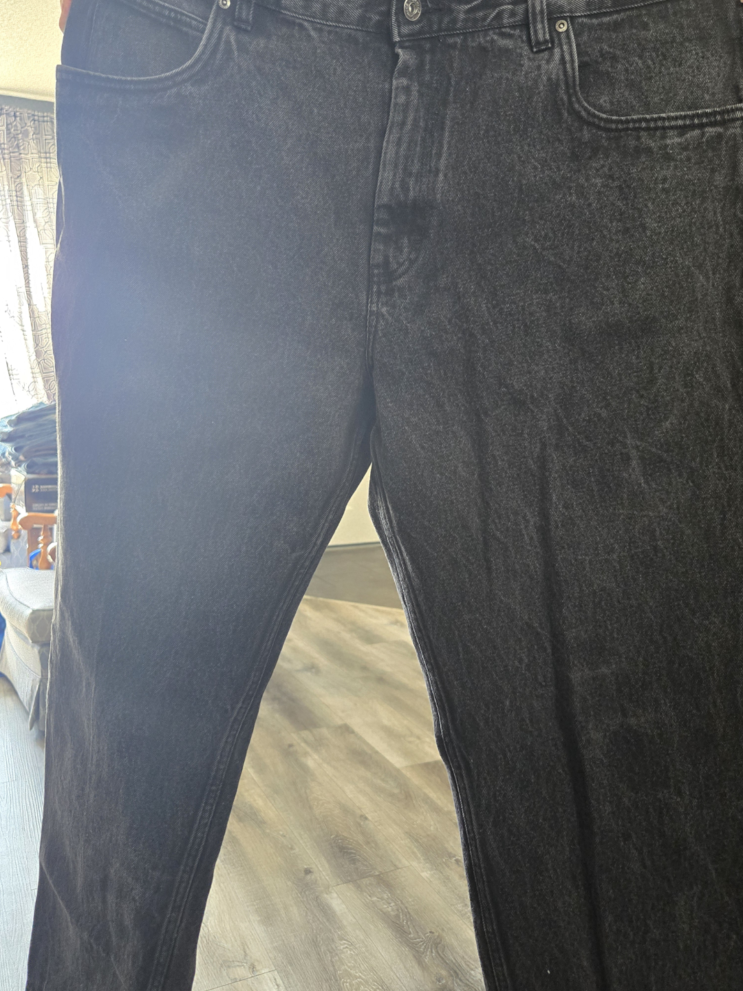 1 / 21 / 2Buy & SellMen's Black Denim JeansMen's Black Denim Jeans$10Relaxed fit black denim jeans. Straight leg. Good condition. I have 2 pairs ConditionGoodSize42x30 WHERE TO MEETCheck LocationView MapSELLERverifiedJasonMckenzie Towne1236 reviews1 chats·0 favorites·16 viewsSEND CHAT TO SELLERHi Jason! I’m interested in your listing.Hi Jason! I’m interested in your listing.Get the Karrot app to chatSign In to chat