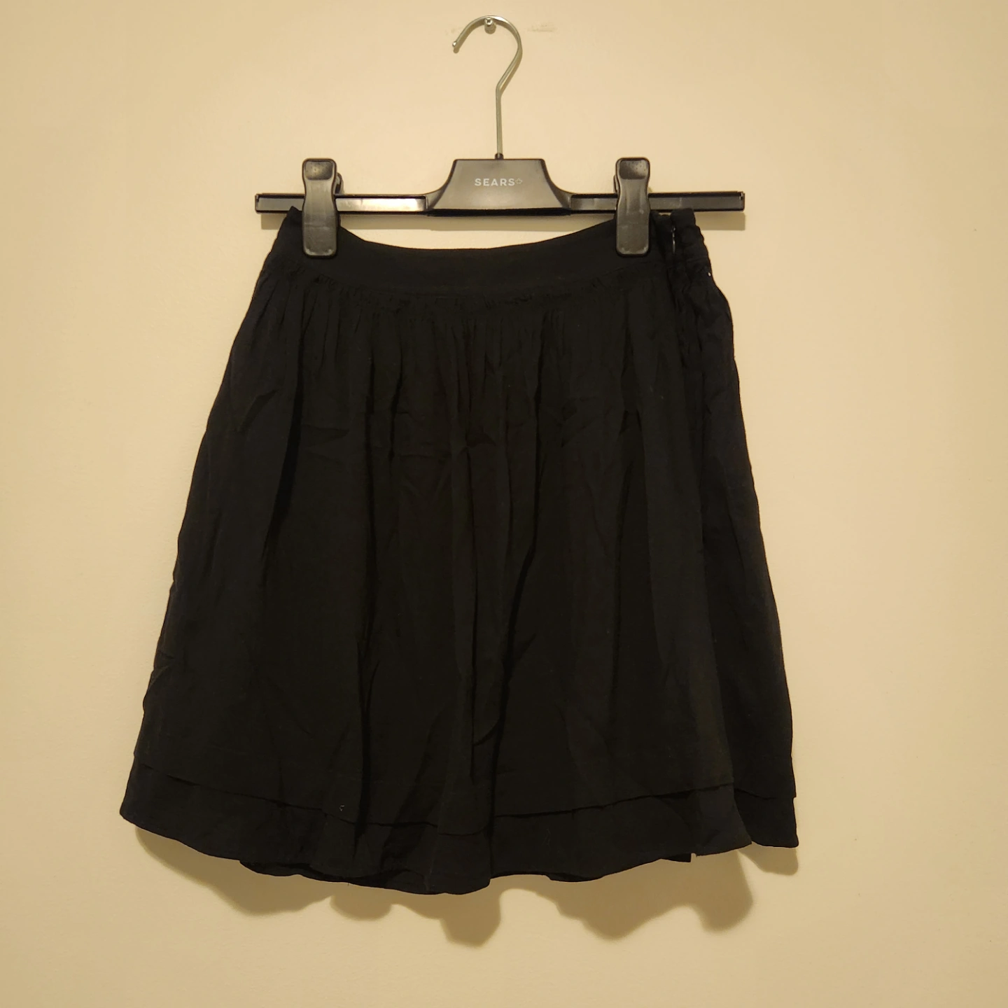 269Black mini skirt. Zipper on the side. Doubled layers. Very good condition. Only worn it twice.