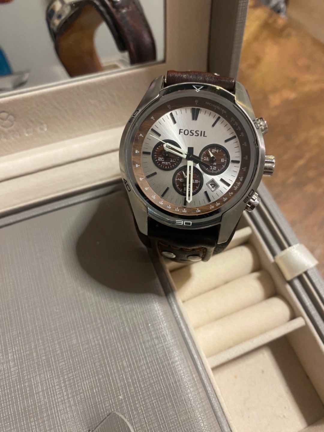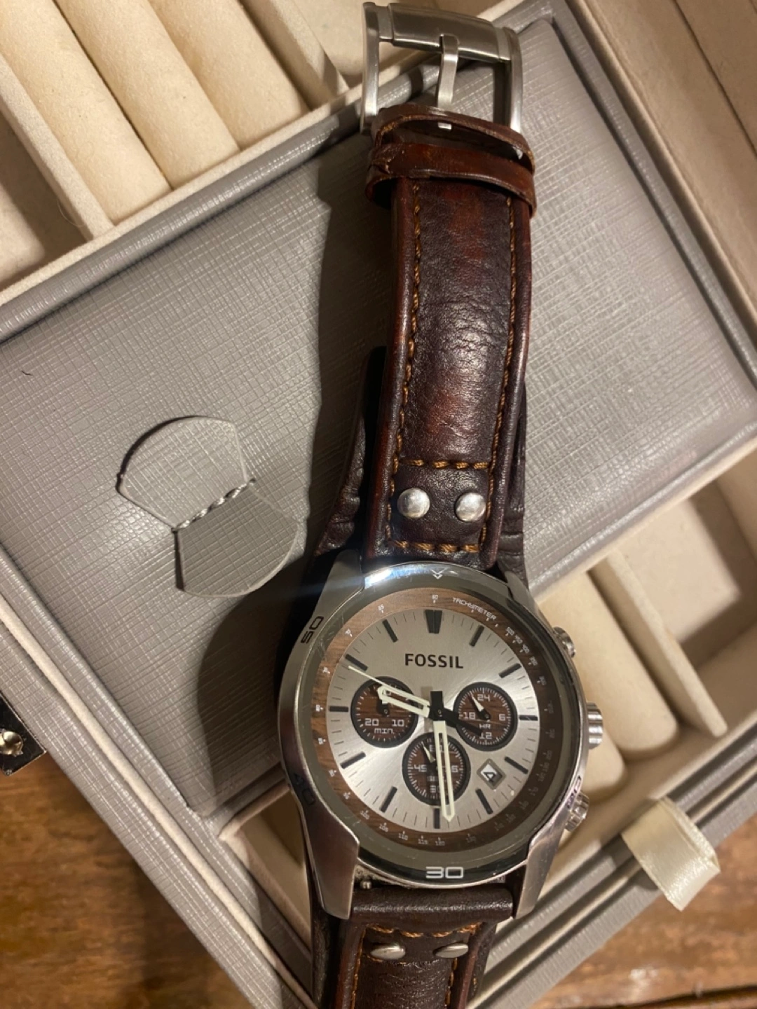 Fossil Men's Chronograph Watch Brown Leather Band
