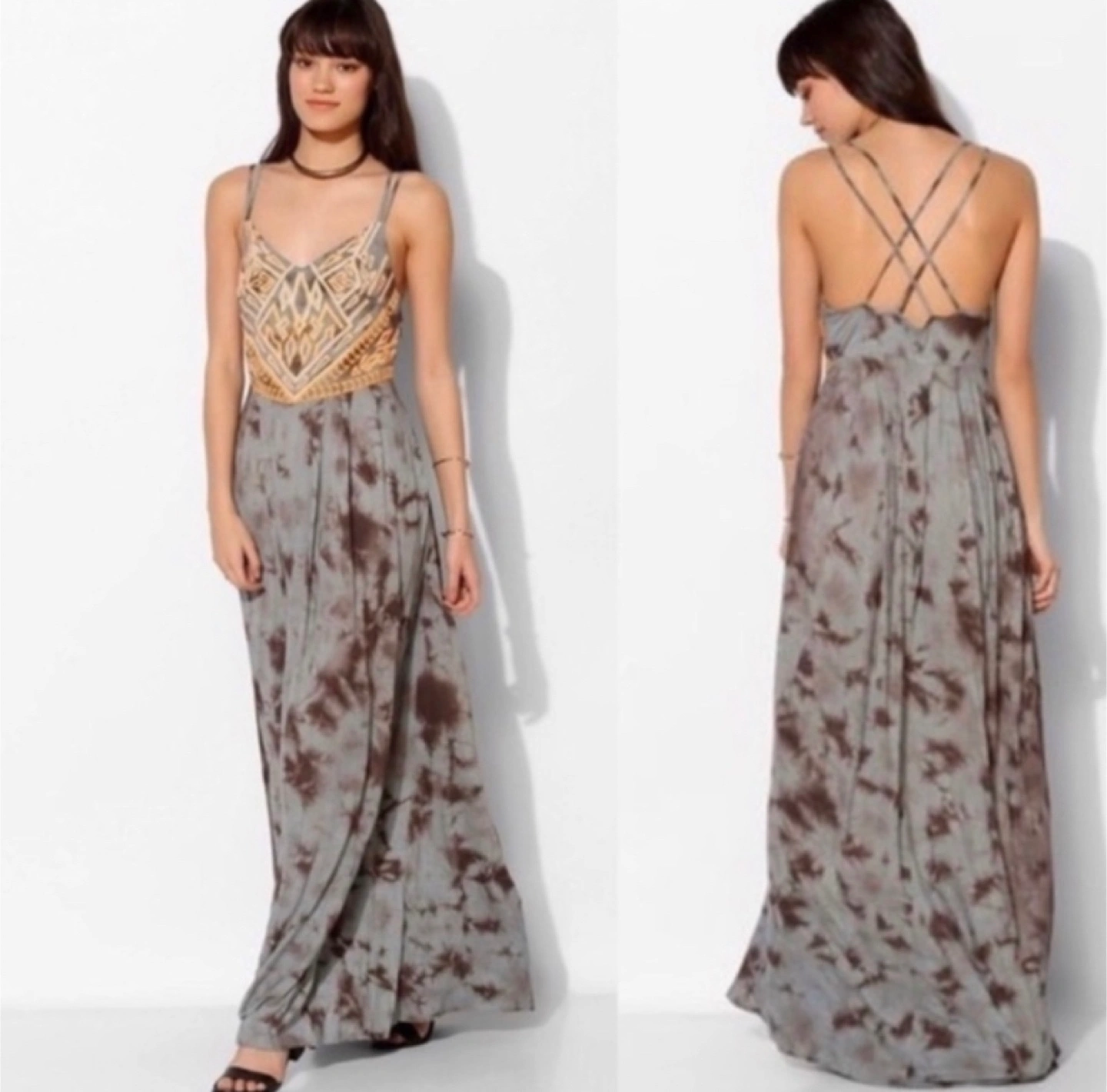 Urban Outfitters Grey Tie-Dye Maxi Dress with Embroidered Detail