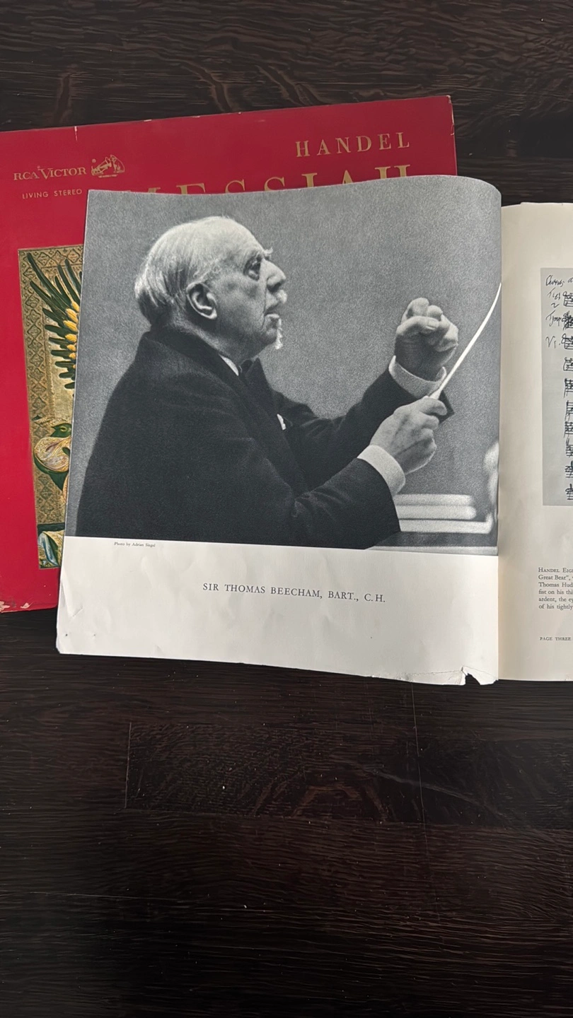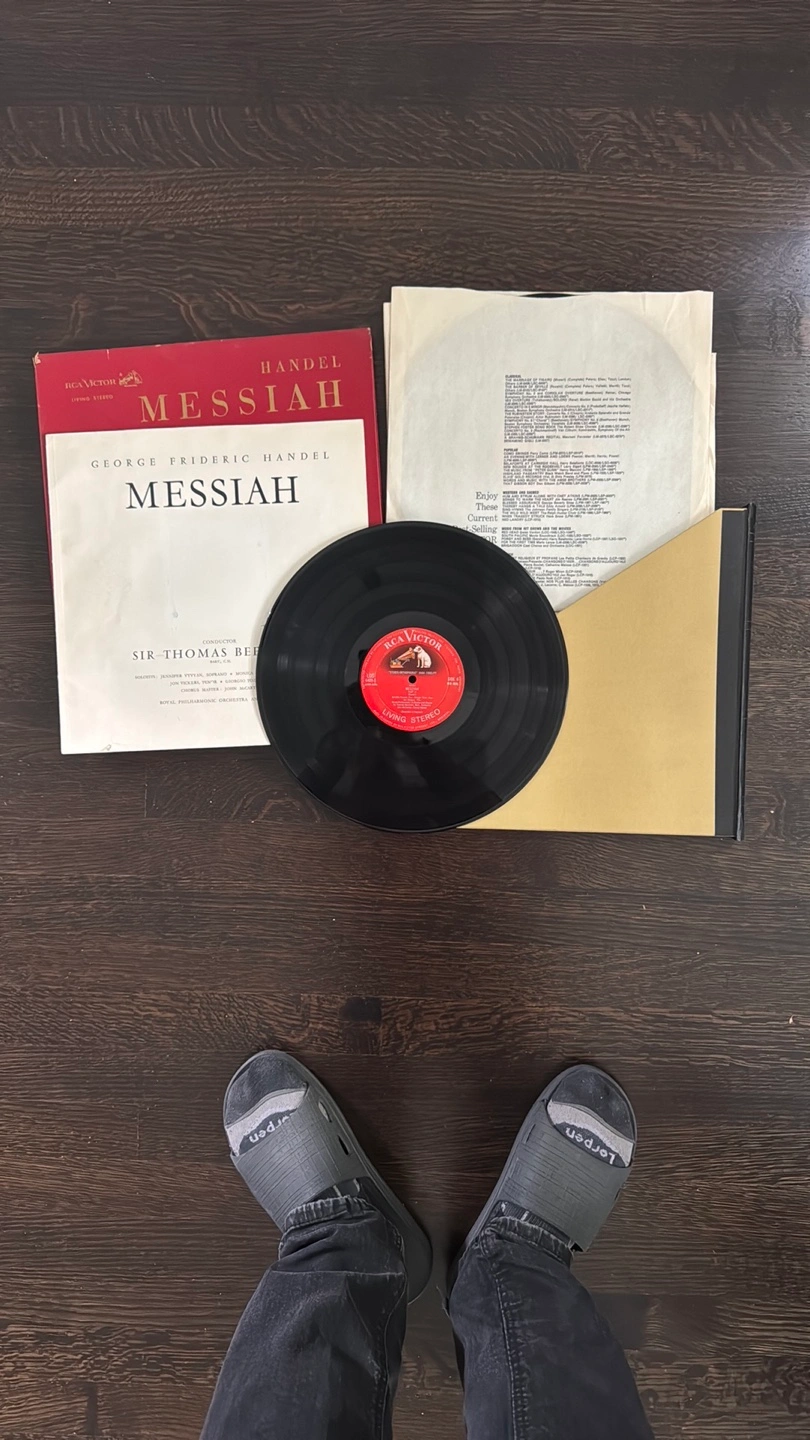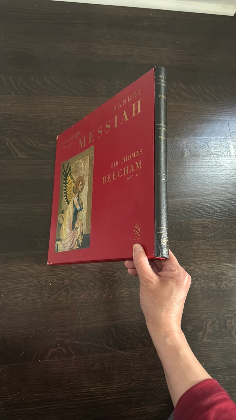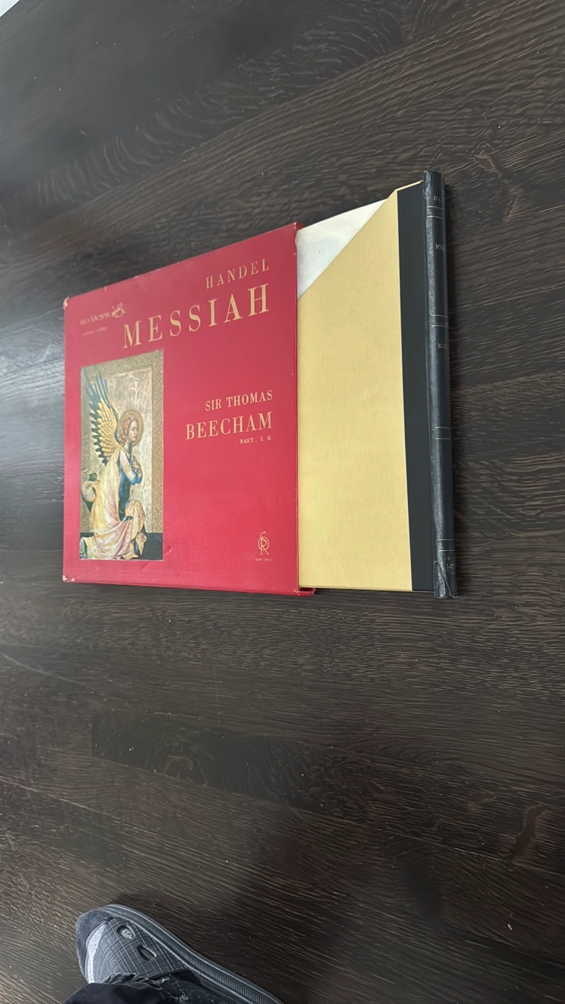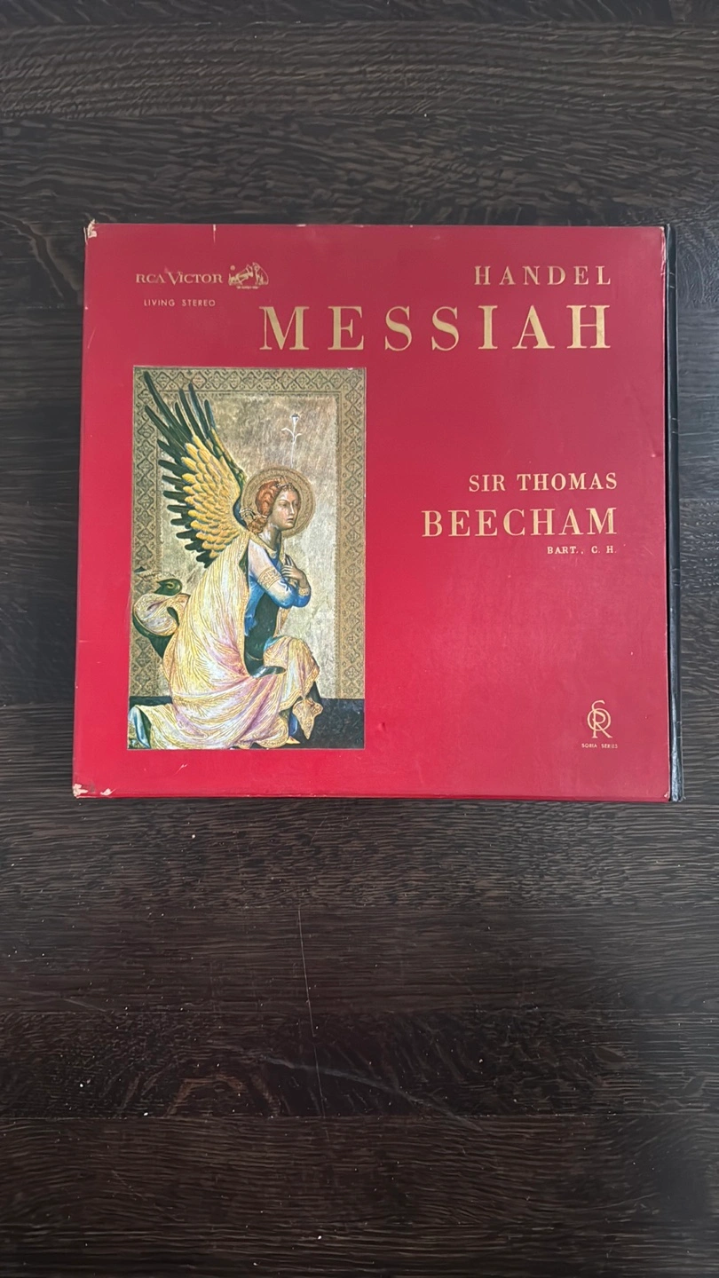 110Vintage vinyl record album. Handel's Messiah. Conducted by Sir Thomas Beecham. Includes record, inner sleeve, and outer box. Living Stereo recording.