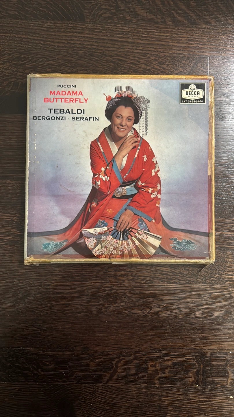 110Three vintage Decca LPs of Puccini's Madama Butterfly. Includes original album art and liner notes. Records appear to be in their original sleeves.