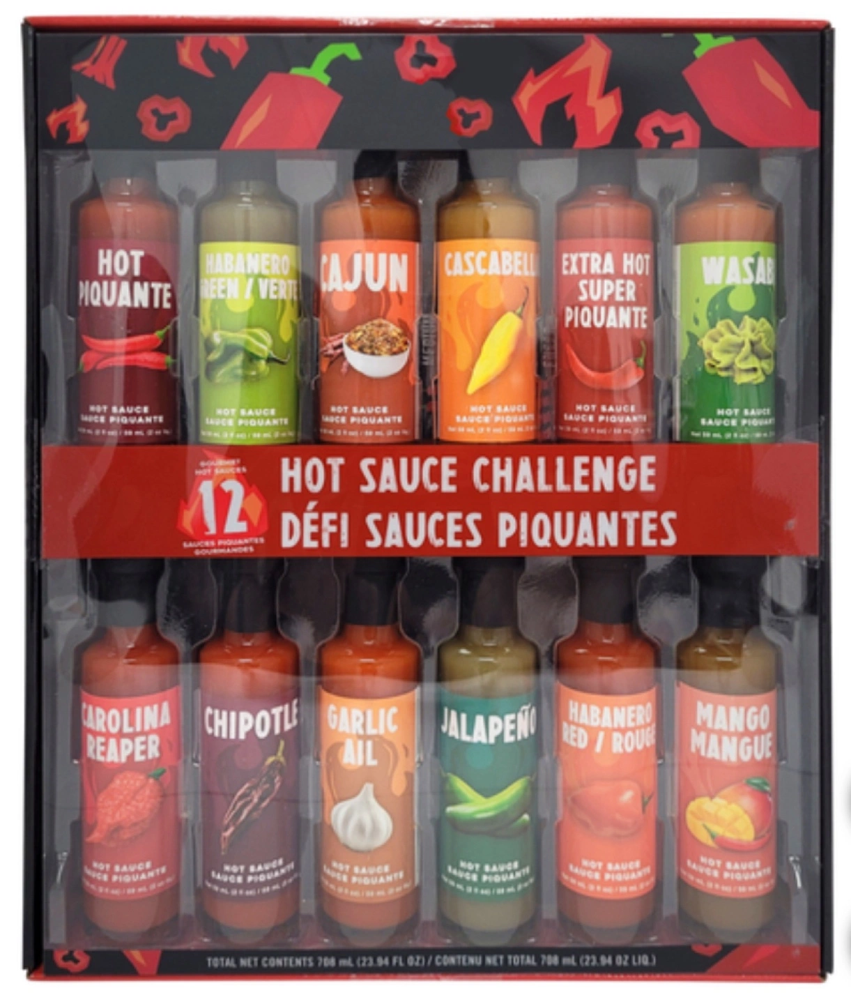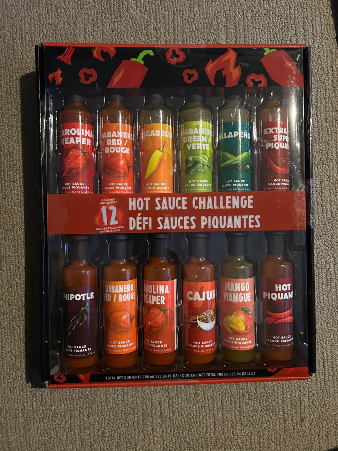 Brand New in Box! Spice up your life with this brand new Hot Sauce Challenge set! It features 12 unique and flavourful hot sauces, perfect for daring taste buds. This set includes a variety of heat levels and flavours. It is unopened and ready for you to try out! If the ad is up, it's available! Remember to check out my other ads. Discount available for multiple purchases!