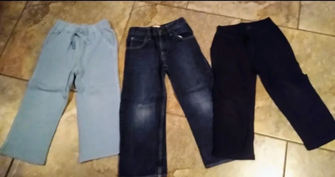 Children's size 4 pants from the GAP store. Six pairs available including one pair of blue jeans and one pair (beige) that converts into shorts. Blue jeans are $8 and all others are $5 each or all six pairs for $30.