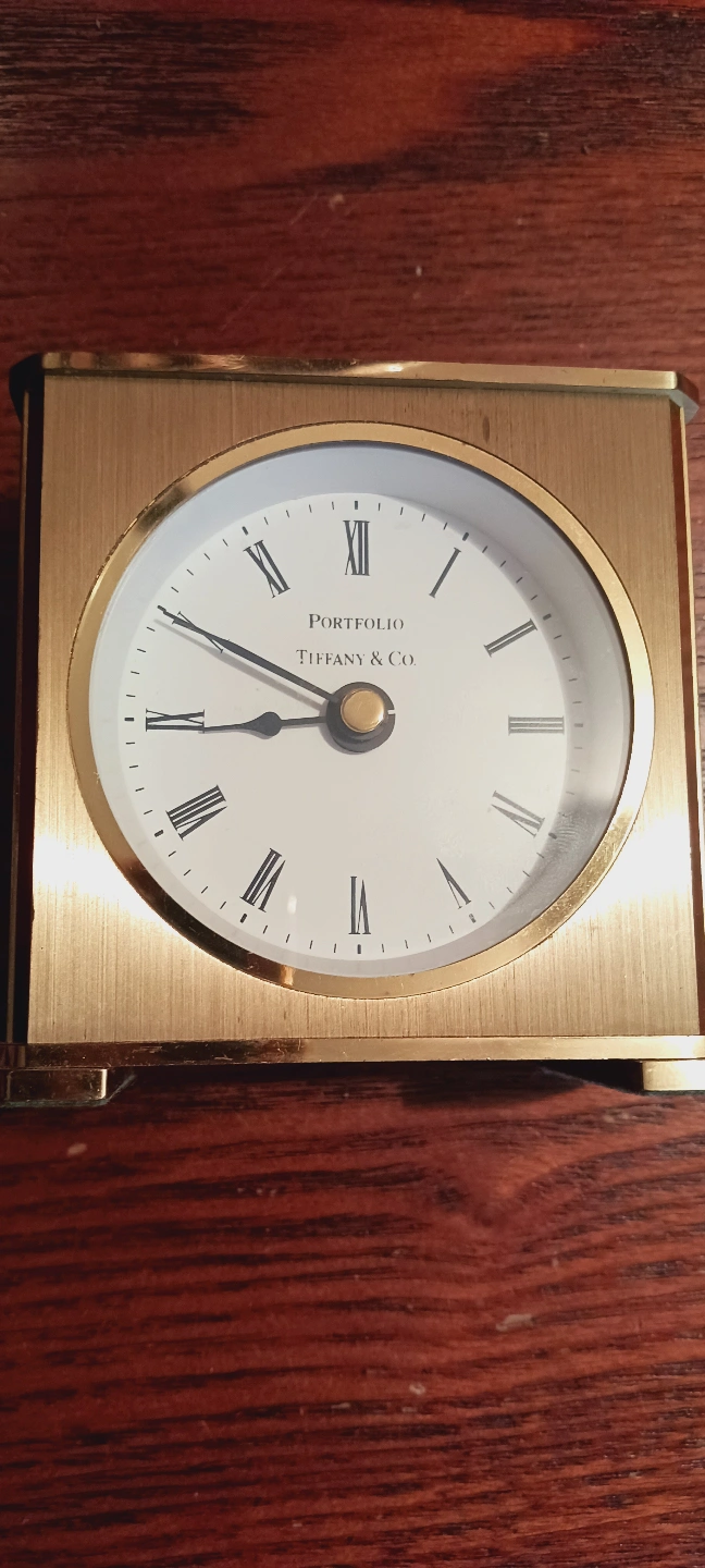 TIFFANY & Co. Portfolio Desk Clock.⏰️ IT IS NOT TESTED, SELLING AS IS. 3"×3".Gold-tone clock. Quartz movement.Square shape. Roman numerals. Battery operated. Selling as is. ALL MY PRICES ARE NEGOTIABLE !!!
