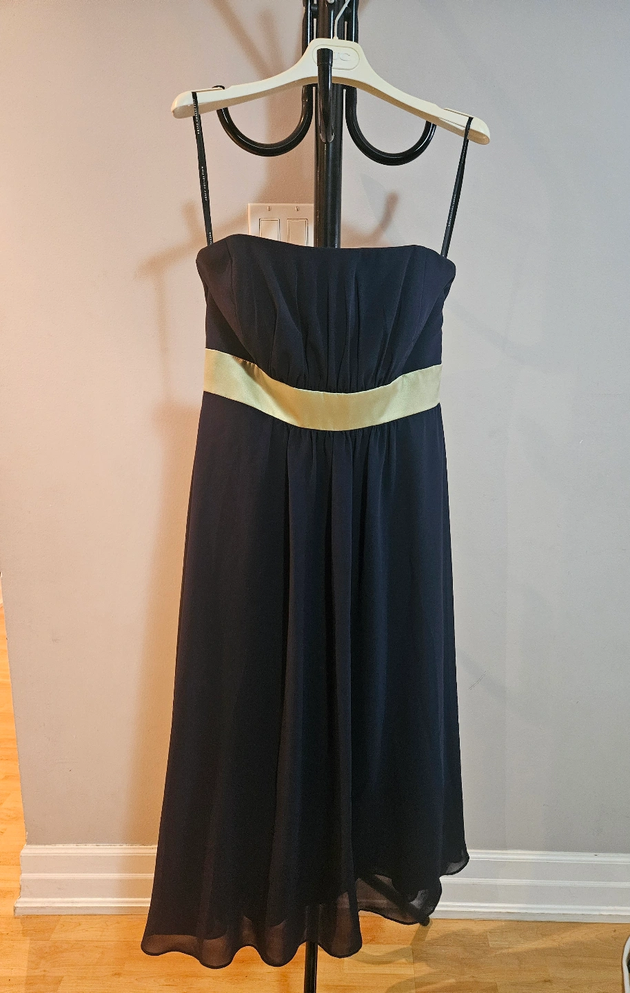 Navy Blue Strapless Bridesmaid Dress with Gold Sash - Size 6