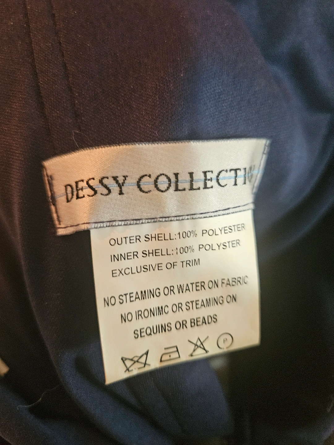 Beautiful navy blue bridesmaid dress. Strapless design. Features a gold sash around the waist. 100% polyester outer shell and inner shell. A-line silhouette. Brand new condition.