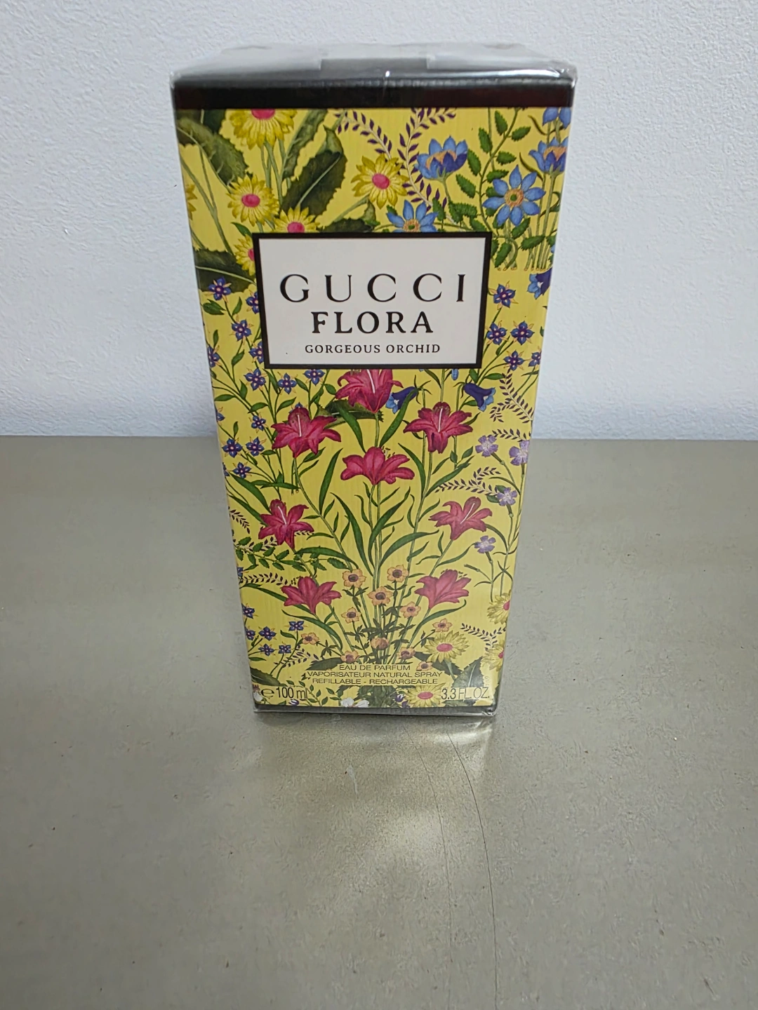 New, unopened bottle of Gucci Flora Gorgeous Orchid Eau de Parfum. 100ML Floral design on box. Refill compatible.