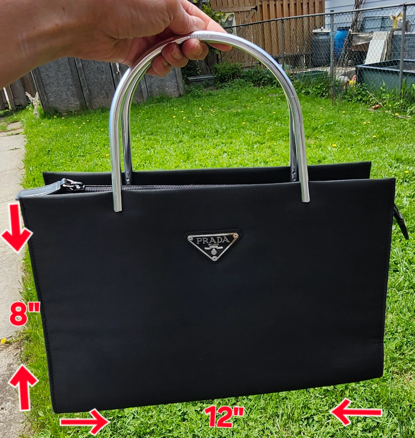 Authentic Prada Black Nylon Tote Bag with Metal Handles