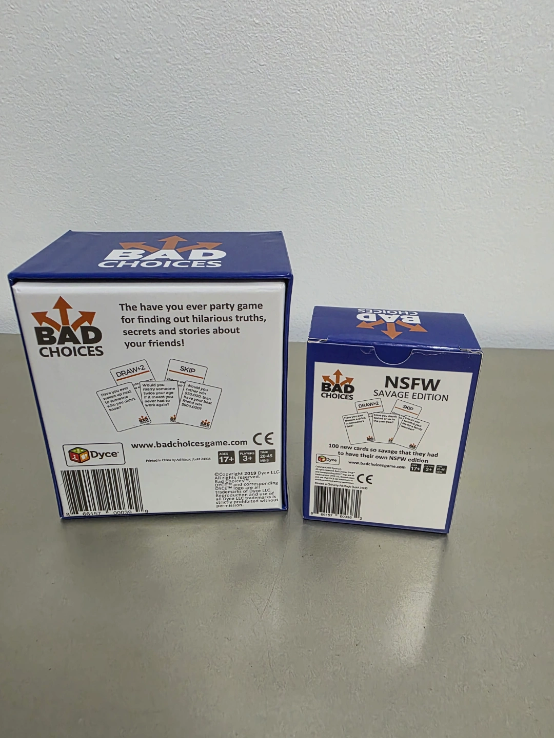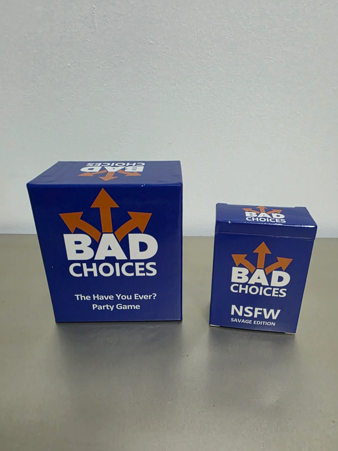 Two Bad Choices party games. One standard edition, one NSFW Savage Edition. Fun party game for adults. Includes cards.