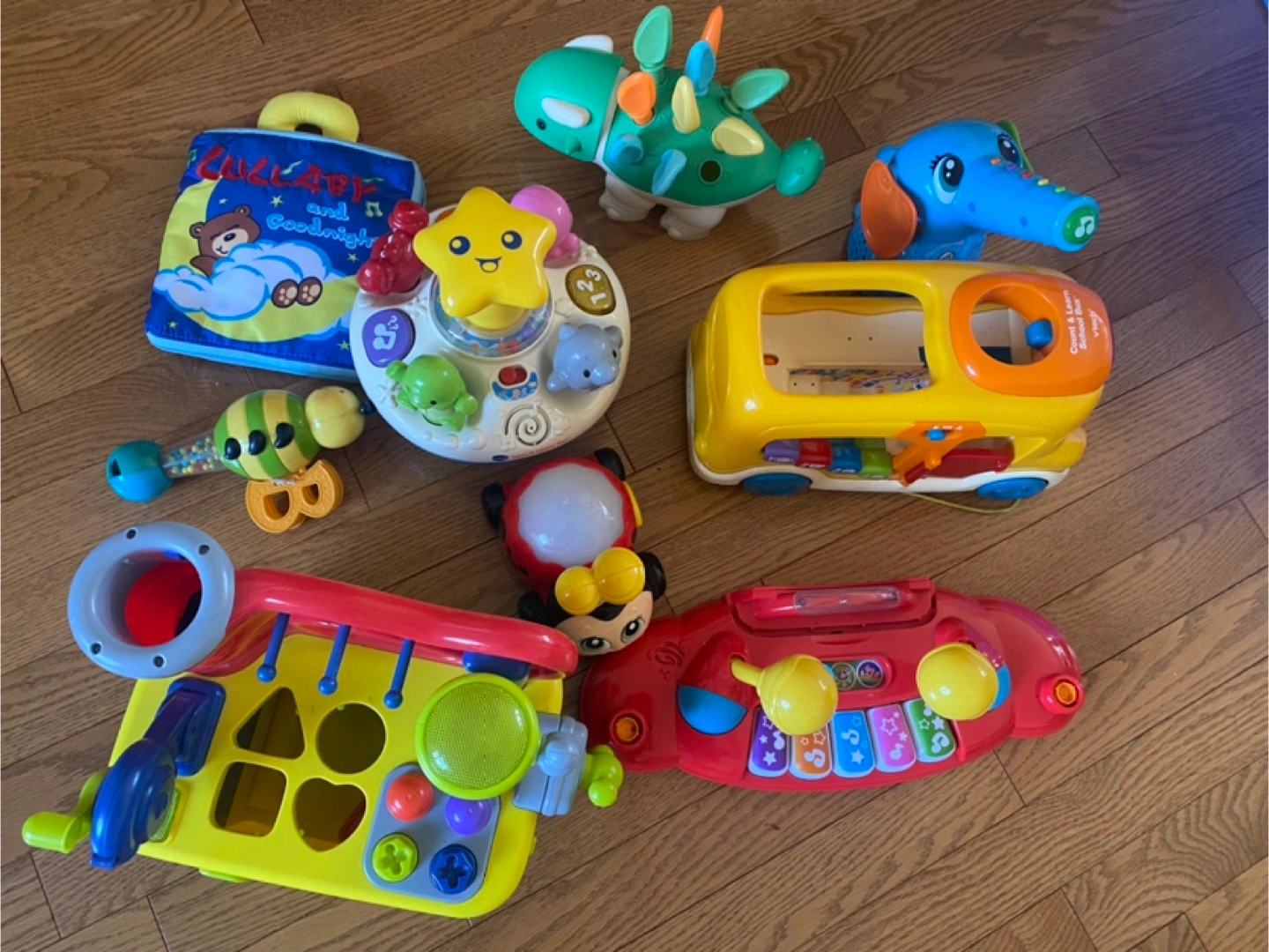 Large lot of baby toys. Includes VTec, Fisher Price, musical and educational toys. etc. Good for sensory play and development.