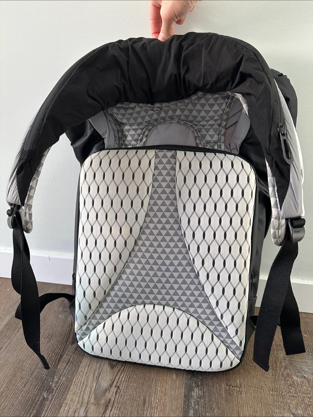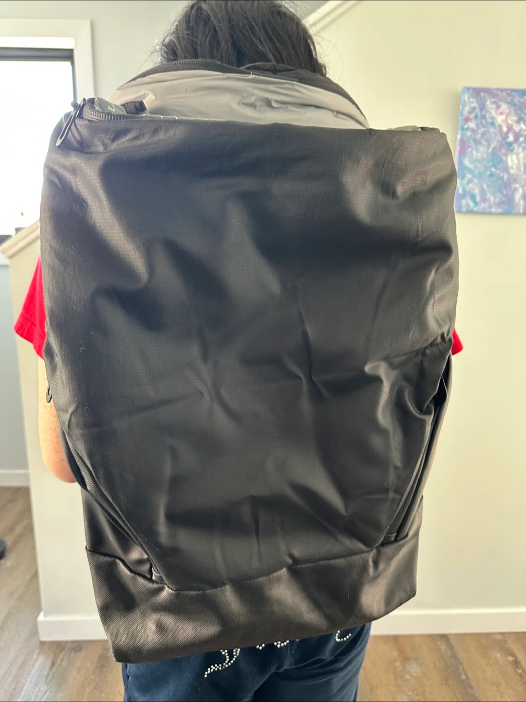 Black and grey rucksack. Features a padded back panel. Multiple compartments. Durable zippers and materials.Excellent for everyday use or travel. Padded pocket for laptop. Water resistant. Also with a hidden cap to protect from light rain. Only available at selected stores in Japan.