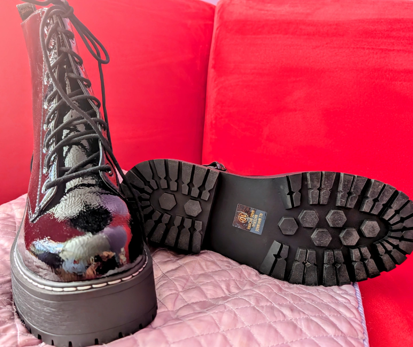 Black Patent faux leather Platform Boots