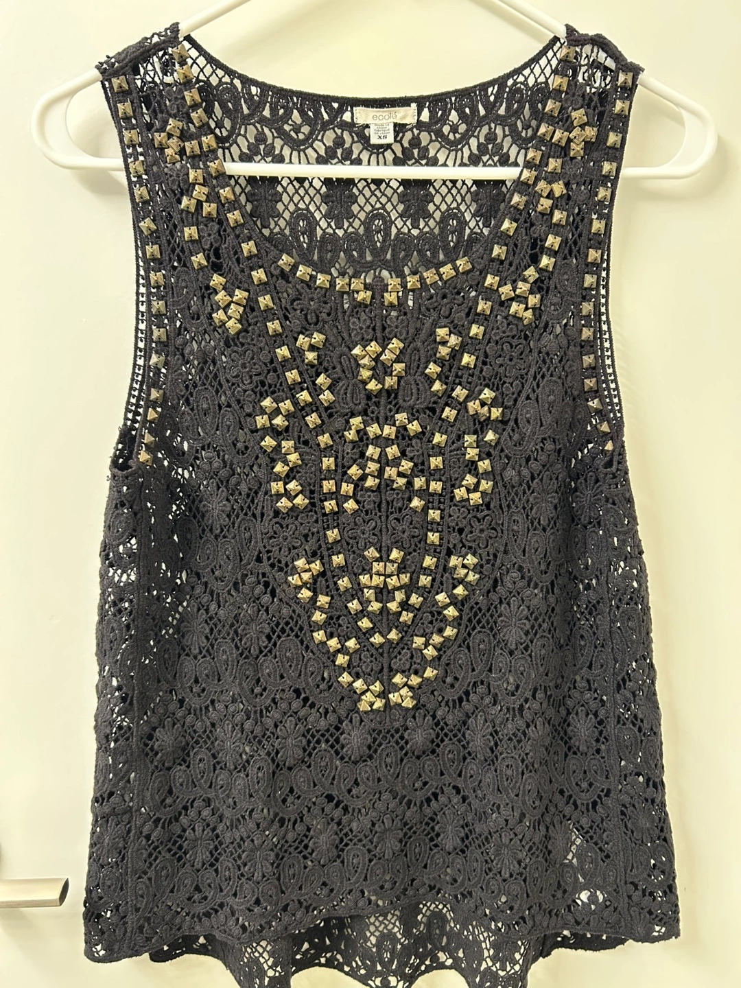 Ecote Black Lace Tank Top with Gold Studs - Size XS