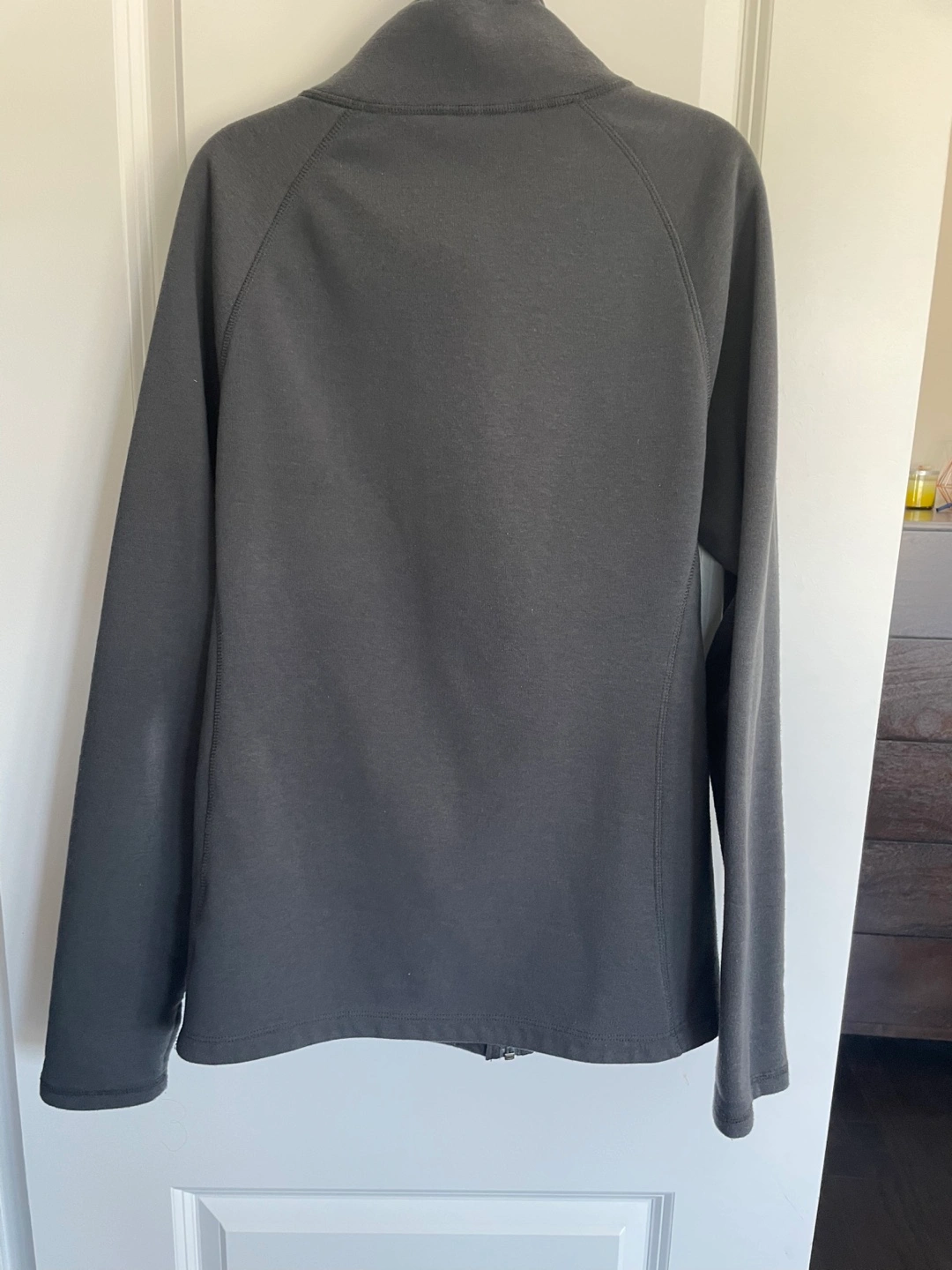 Women's size large black zip-up fleece jacket. Full-zip closure. Long sleeves. Good for layering. Soft material.