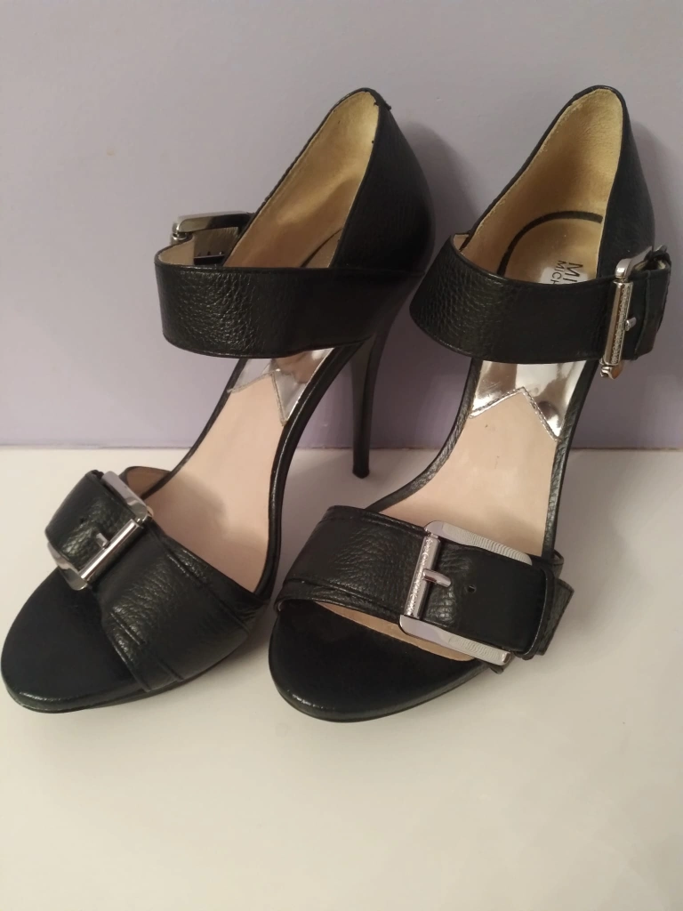 Michael Kors Faith Sandals black leather with silver metal buckles in excellent condition! Size 10. I paid $150 for them and only wore them once. Pickup dufferin and Steeles area or shipping available for a fee