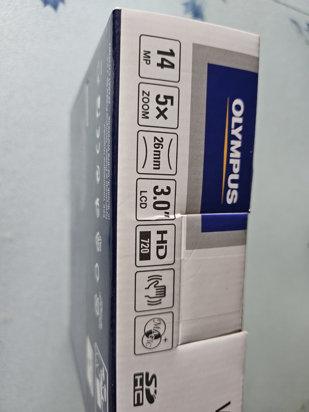 Olympus VG-160 digital camera. 14MP. 5x zoom. 26mm lens. 720p HD video. Compact and easy to use. Includes original box.