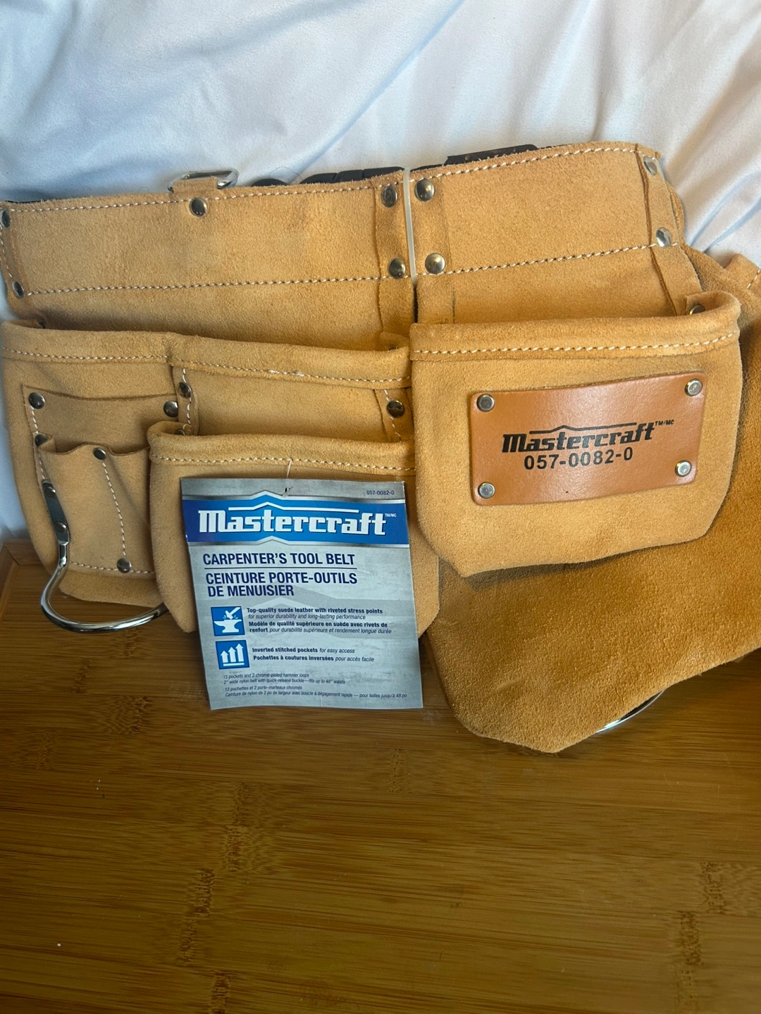 Buy & SellMastercraft Carpenter's Tool BeltMastercraft Carpenter's Tool Belt$59Tan leather tool belt. Multiple pockets. Metal rivets and accents. Great for carrying tools.ConditionNew0 chats·0 favorites·15 viewsSELLERCecileW Oak Trails141 reviewWHERE TO MEETCheck Location