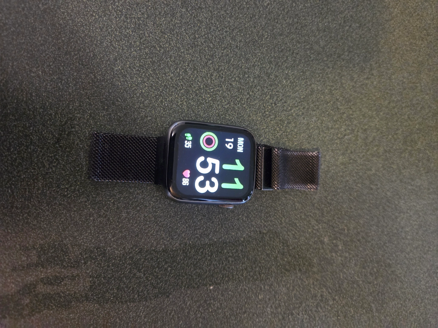 Smart Watch with a black Milanese Loop band. In good condition. Comes with charger and app. Monitors sleep, heart rate, steps, blood pressure, and more. Only selling because I bought a Samsung one in a Telus deal. I don't need 2 watches.
