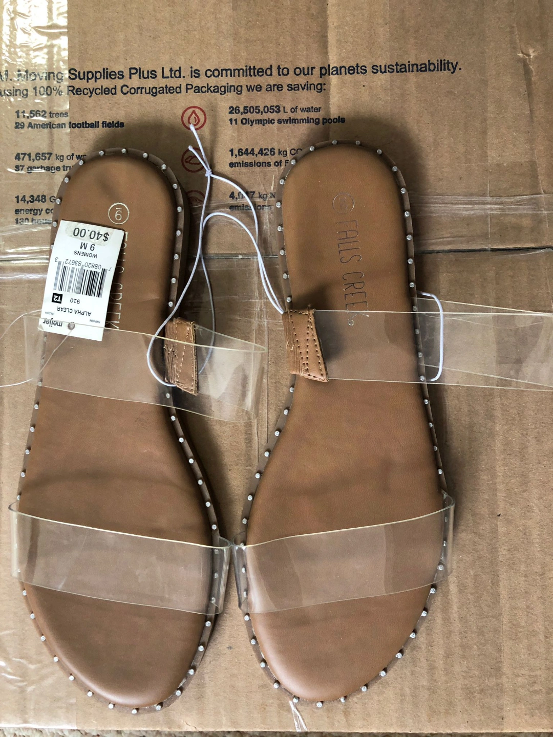 Falls Creek Women's Tan Clear Strap Sandals (Size 8M)