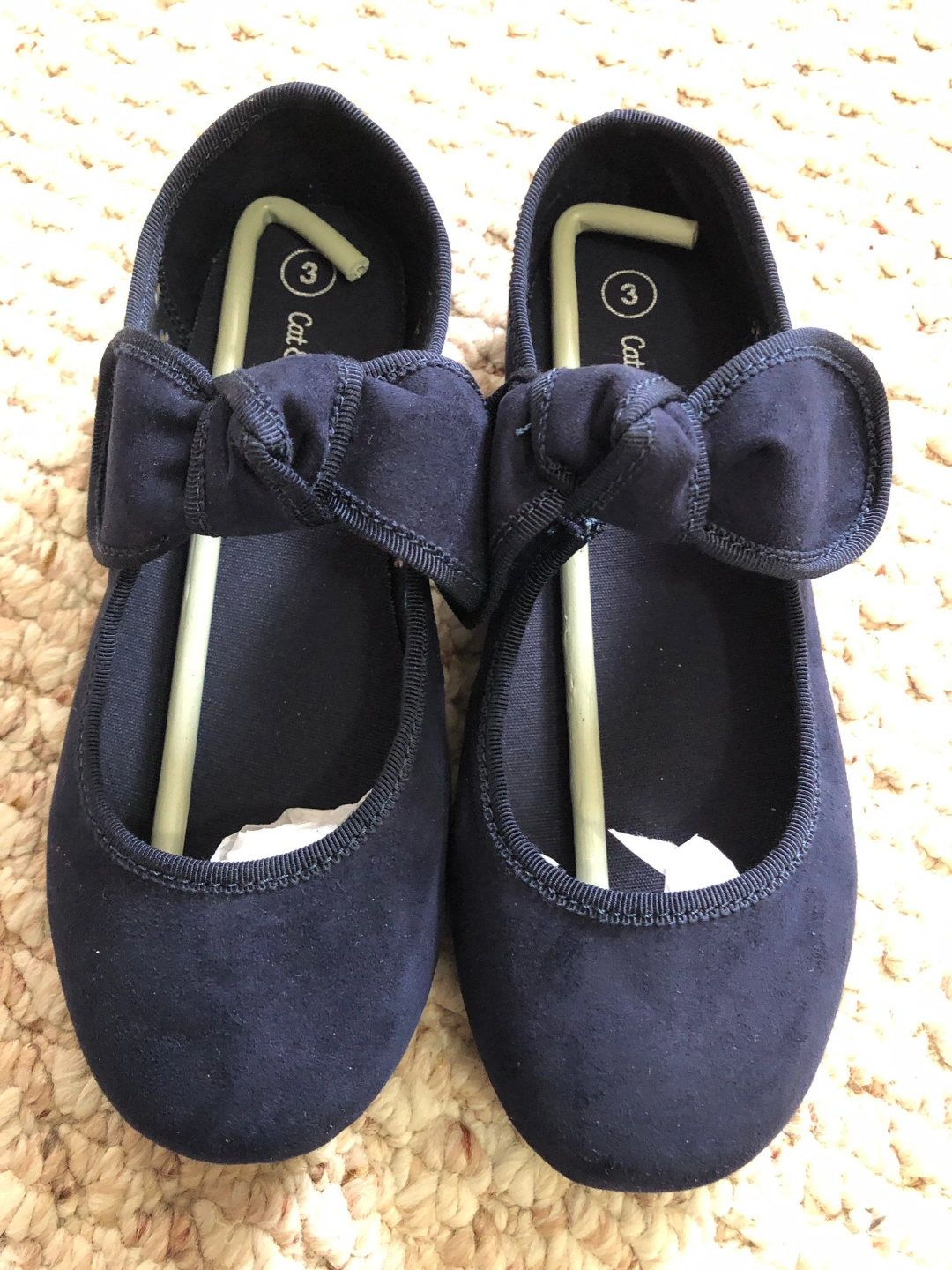 Cat & Jack Girls' Navy Blue Bow Flats - Size 3