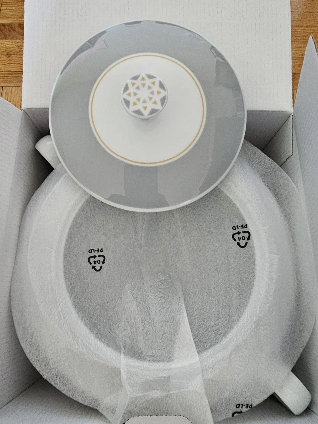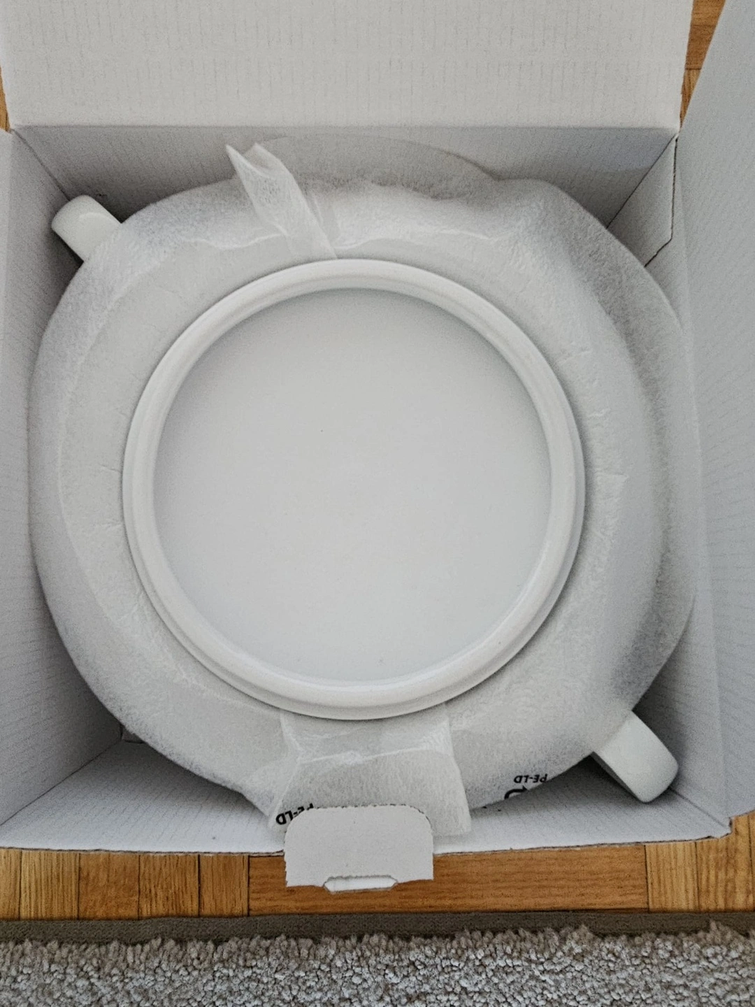 New IKEA GOKVÄLLA casserole dish. 2 litre capacity. Features a geometric design. Includes lid. Microwave, oven, and dishwasher safe. Pick up only at Finch and Islington location. Never used.