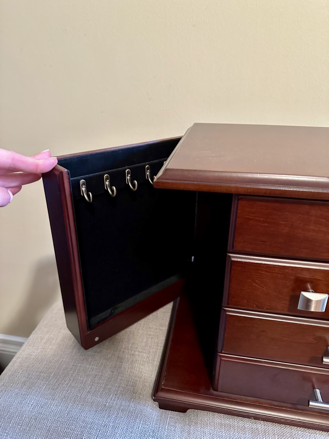 Wooden Jewelry Box with Drawers and Mirror