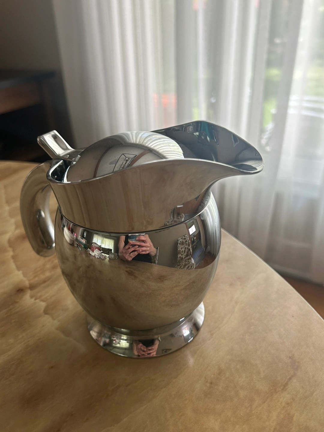 Sleek and shiny stainless steel with hinged lid. Perfect for keeping the gravy warm at your family functions.