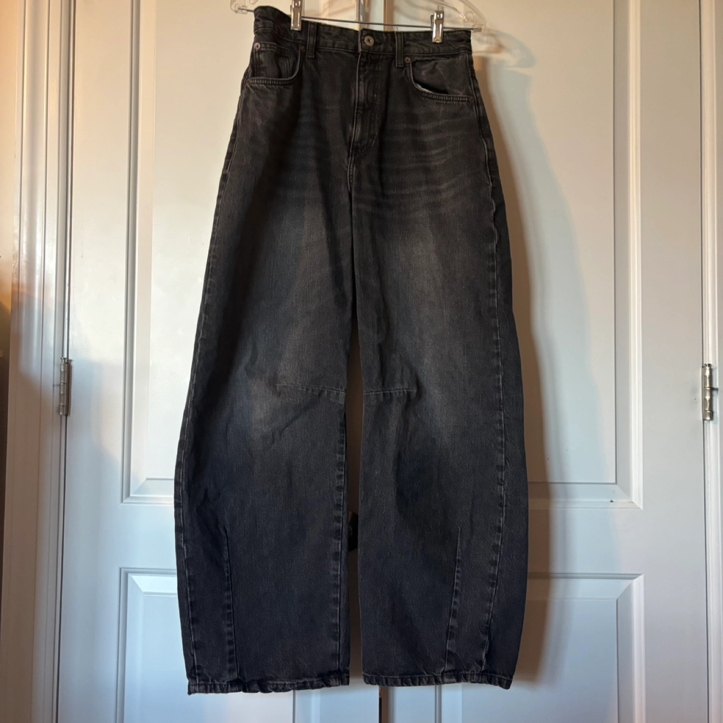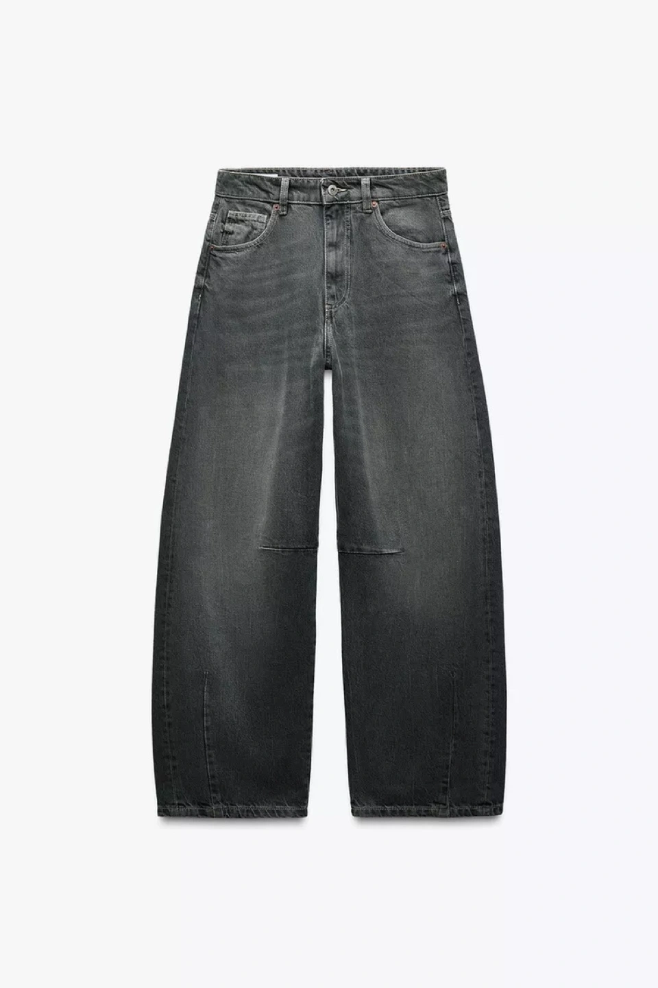 Baggy balloon jeans with a mid waist and five pockets. Twisted seams. Front zip and metal button closure. 76% cotton 24% lycell