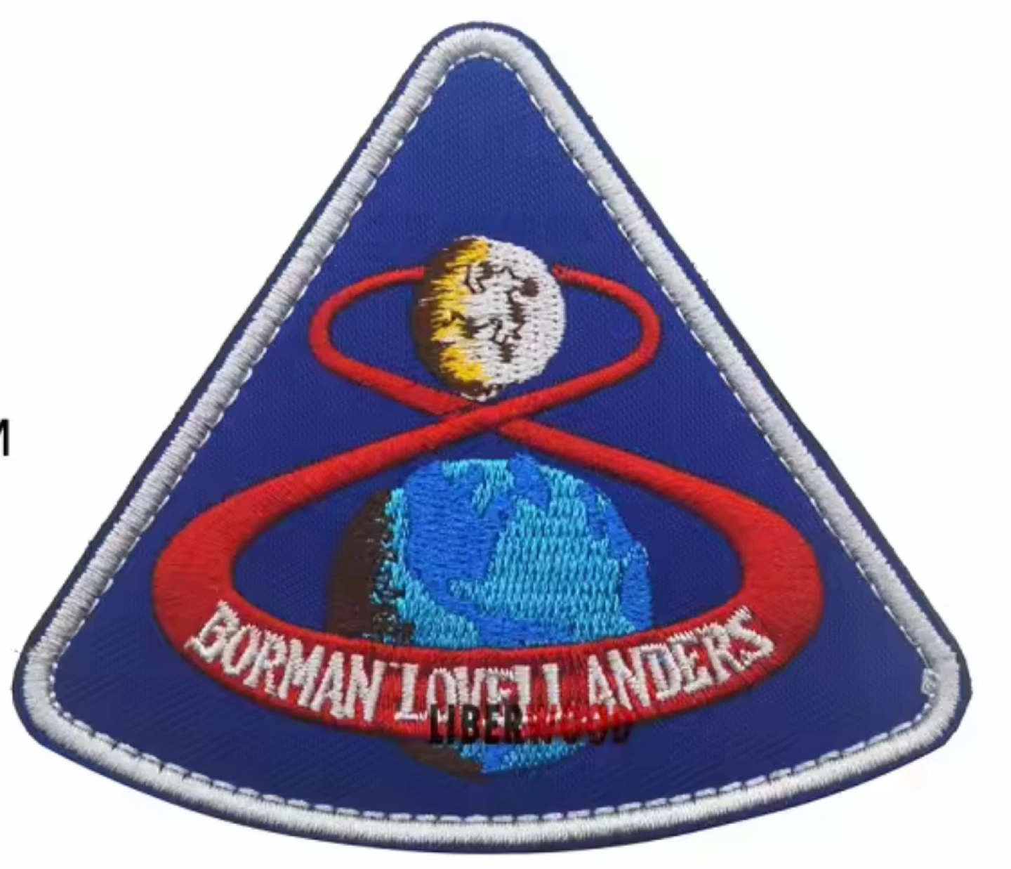 Embroidered patch with Velcro backing. Based on official mission patch for the Apollo 8 mission. Features the names Borman, Lovell, and Anders. Depicts Earth and the moon.