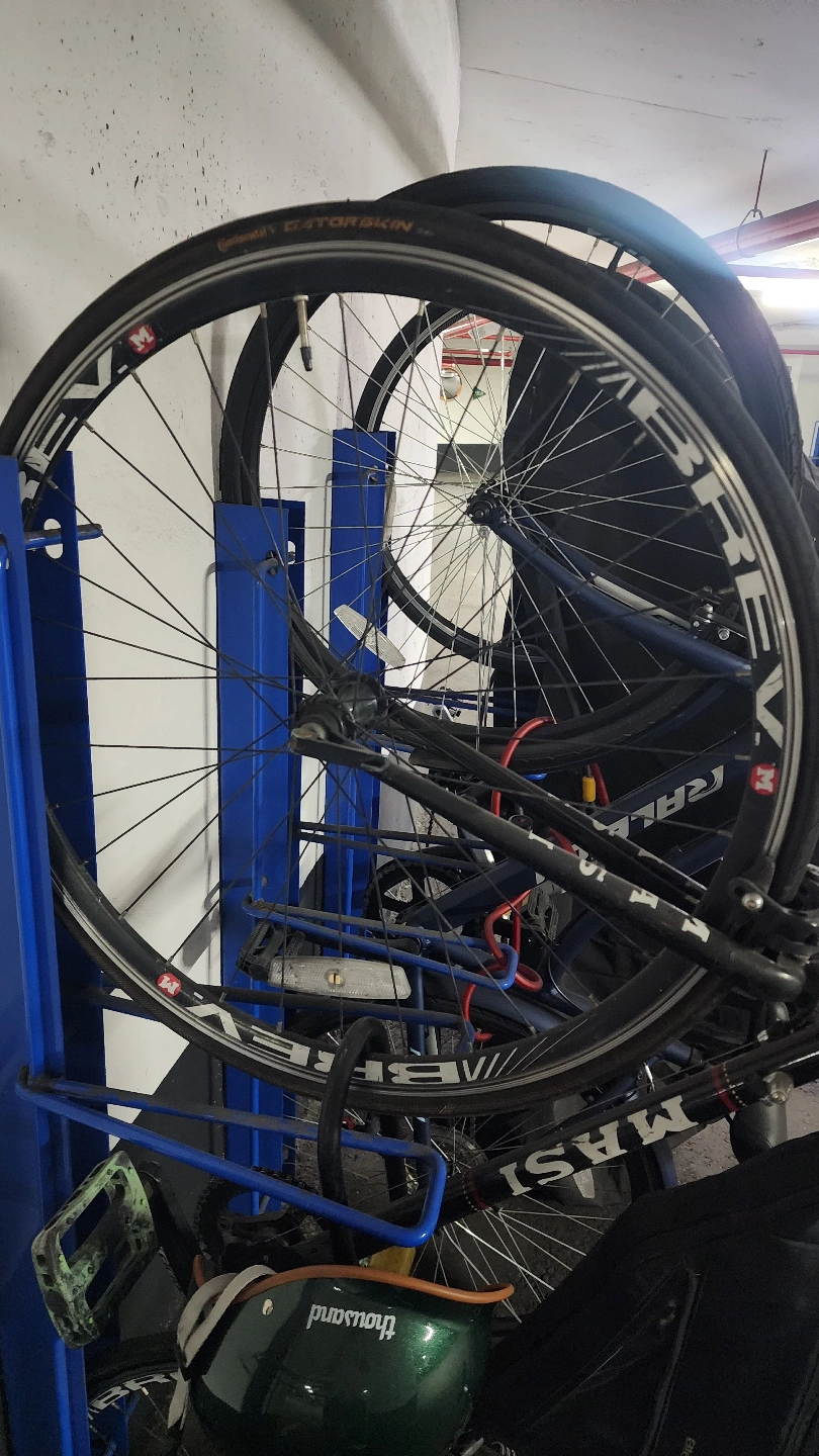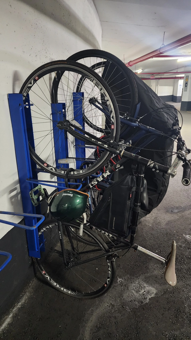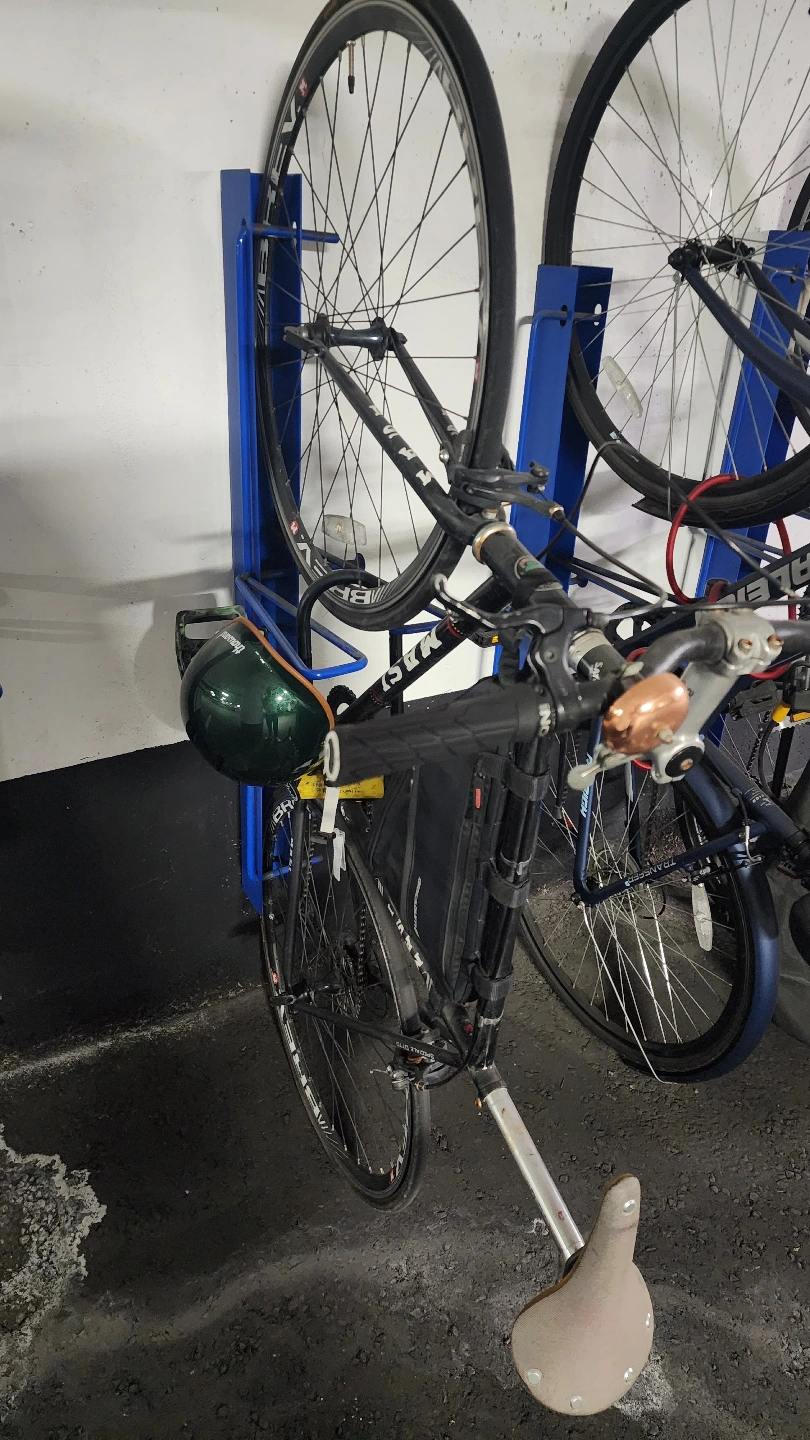 Pre-owned road bicycle, excellent condition. Includes a Thousand brand helmet. Great for commuting or leisure rides. Tires appear to be in good shape. Black frame. Some wear and tear expected from previous use.