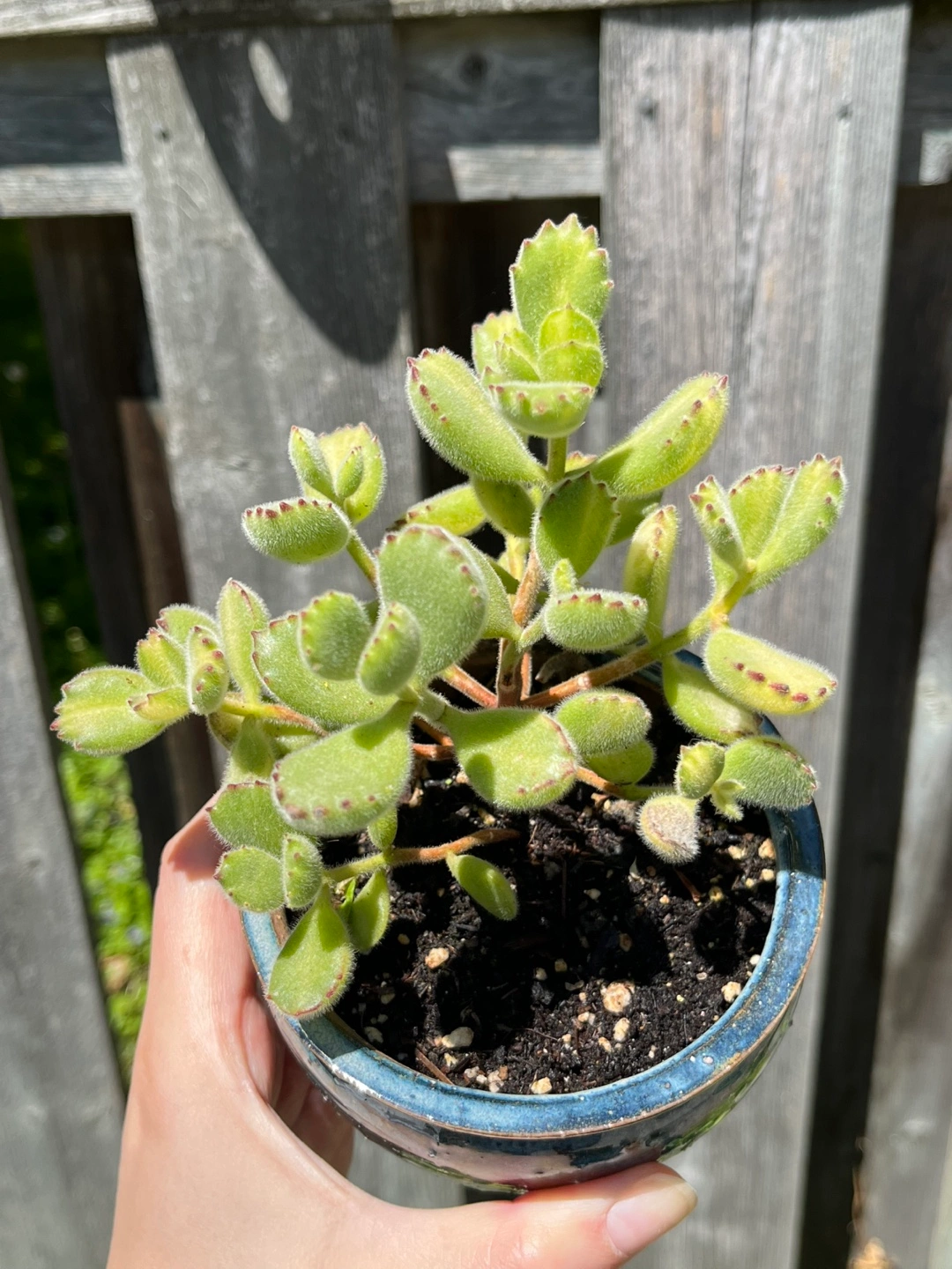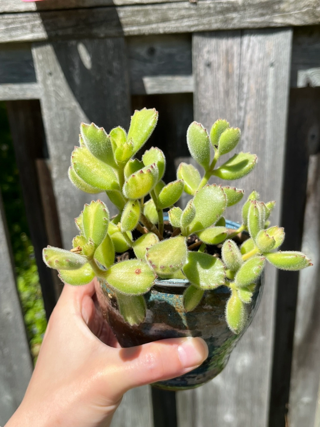 Live Succulent “Bear paw” with pot. Fuzzy leaves, light green with red edges. Great addition to your houseplant collection.
