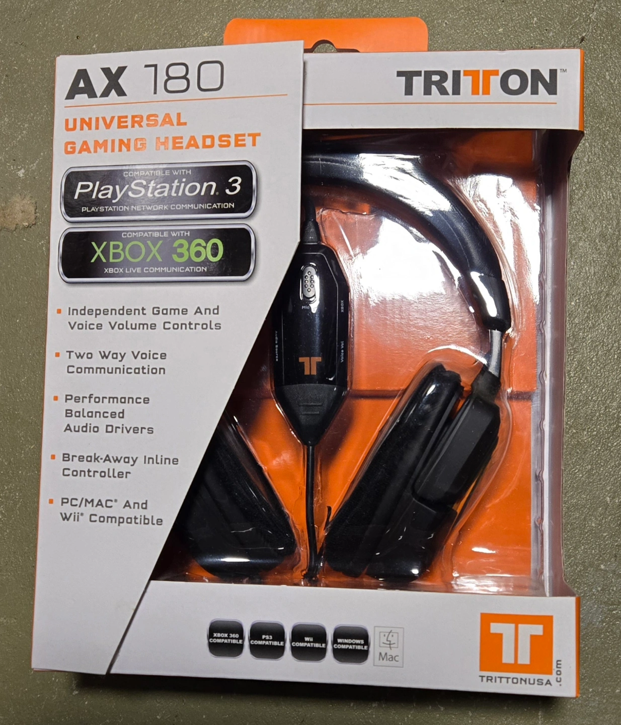 66Brand new, still in original packaging. Universal gaming headset compatible with PlayStation 3, Xbox 360, PC, Mac, and Wii. Features independent game and voice volume controls, two-way voice communication, balanced audio drivers, and a break-away inline controller. Removable flexible microphone.