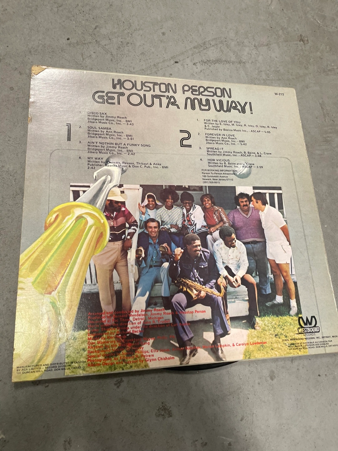 Original 1975 Canadian pressing of Get Out’a My Way! by tenor saxophonist Houston Person, released on Westbound Records (W-213). This album features a dynamic blend of jazz, funk, and disco, with standout tracks like “Disco Sax,” “Soul Samba,” and a soulful rendition of the Isley Brothers’ “For The Love Of You.” Arranged by Jimmy Roach, the album includes performances by The Westbound Gang and backing vocals by Honey