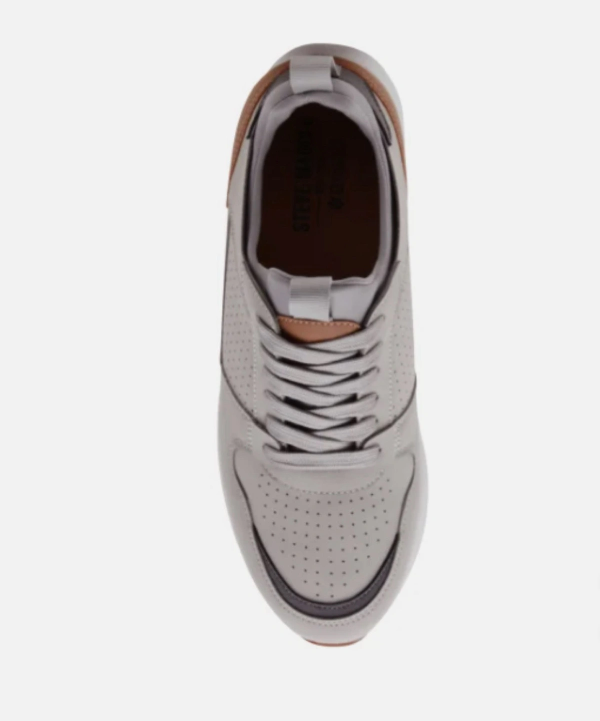 Step out in style with these stylish Steve Madden sneaker shoes! These sneakers feature a sleek grey design with brown accents, perfect for adding a touch of sophistication to your casual look.
