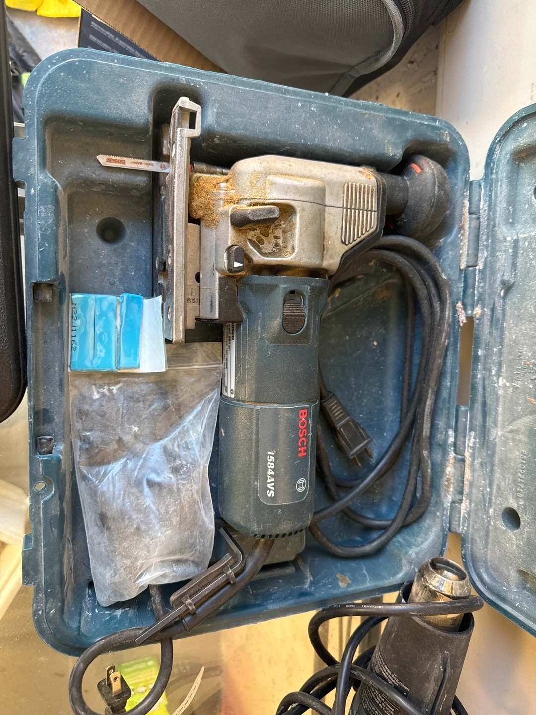 121Bosch jig saw model 1584AVS. Includes case and extra blades. Used condition.